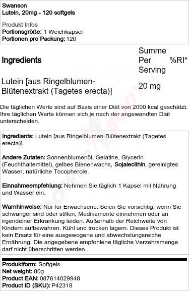 3 x Swanson Lutein, 20mg - 60 softgels