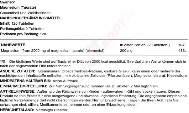 3 x Swanson Magnesium (Taurate) - 120 tabs
