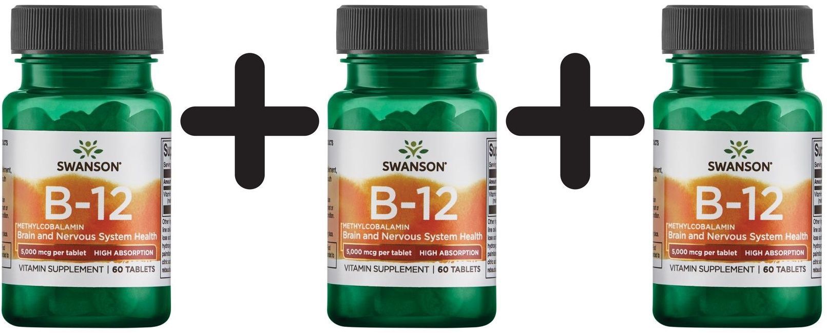 3 x Swanson Methylcobalamin High Absorption Vitamin B-12, 5mg - 60 tabs