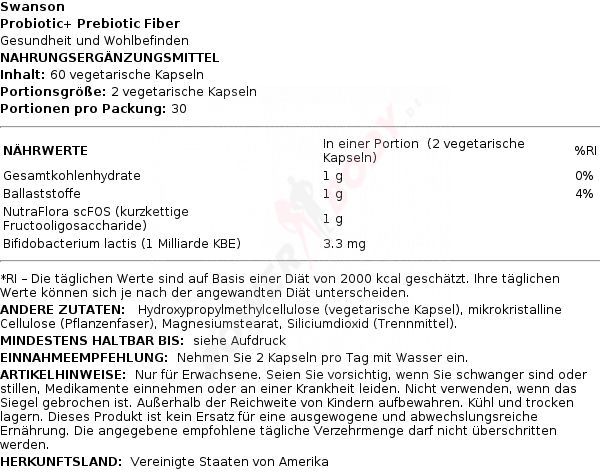 • 2 x Swanson Probiotic+ Prebiotic Fiber - 60 vcaps