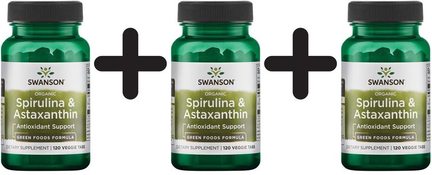 3 x Swanson Spirulina & Astaxanthin, Organic - 120 veggie tabs