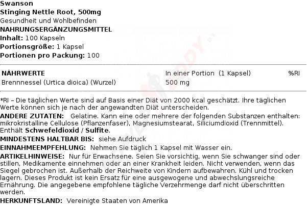 3 x Swanson Stinging Nettle Root, 500 mg - 100 caps