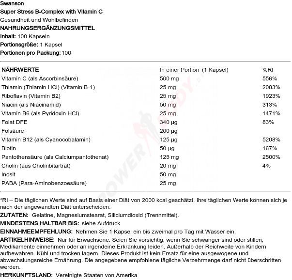 3 x Swanson Super Stress B-Complex with Vitamin C - 100 caps