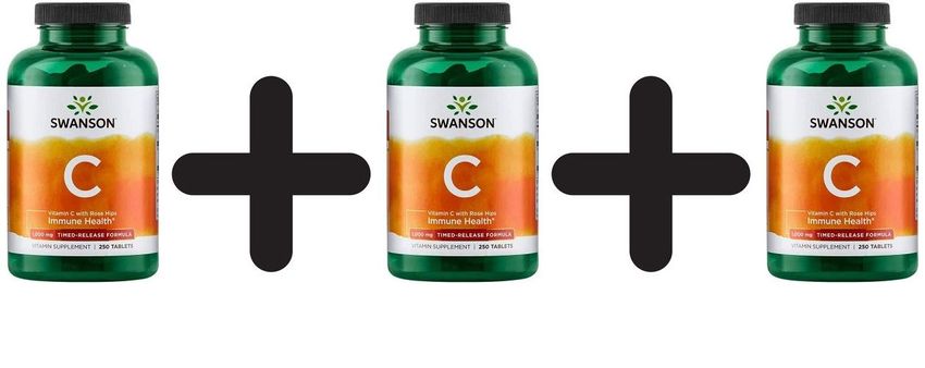 3 x Swanson Vitamin C with Rose Hips, 1000mg Timed-Release - 250 tabs