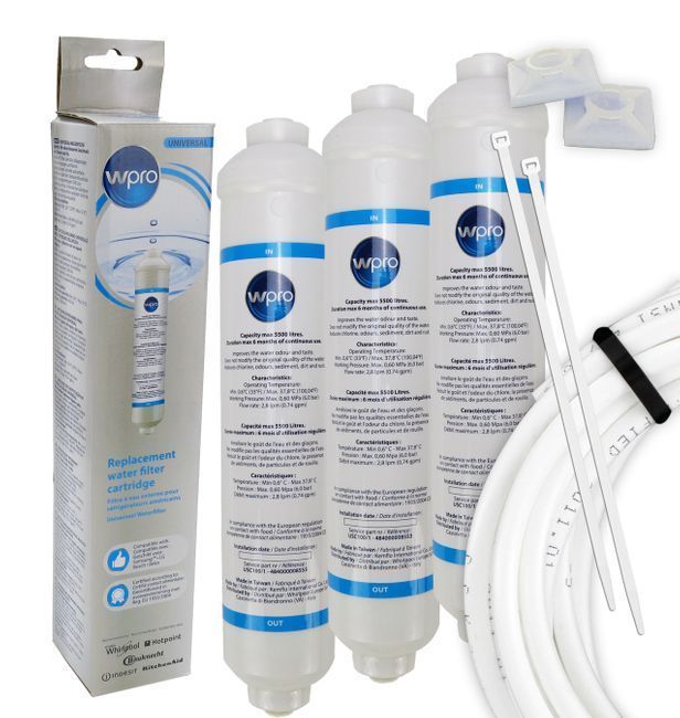 3 x Neu und Originalverpackter Wpro Wasserfilter aus Aktivkohle + 2 m Schlauch GRATIS + Befestigungsmaterial - High Quality Wasserfilter von Wpro - Hochleistungs Aktivkohle - Wasserfilter für fast alle Stand-Kühlschränke - Wasser und Eis ohne Chlor und andere Verunreinigungen Funktionsweise: Die Fil
