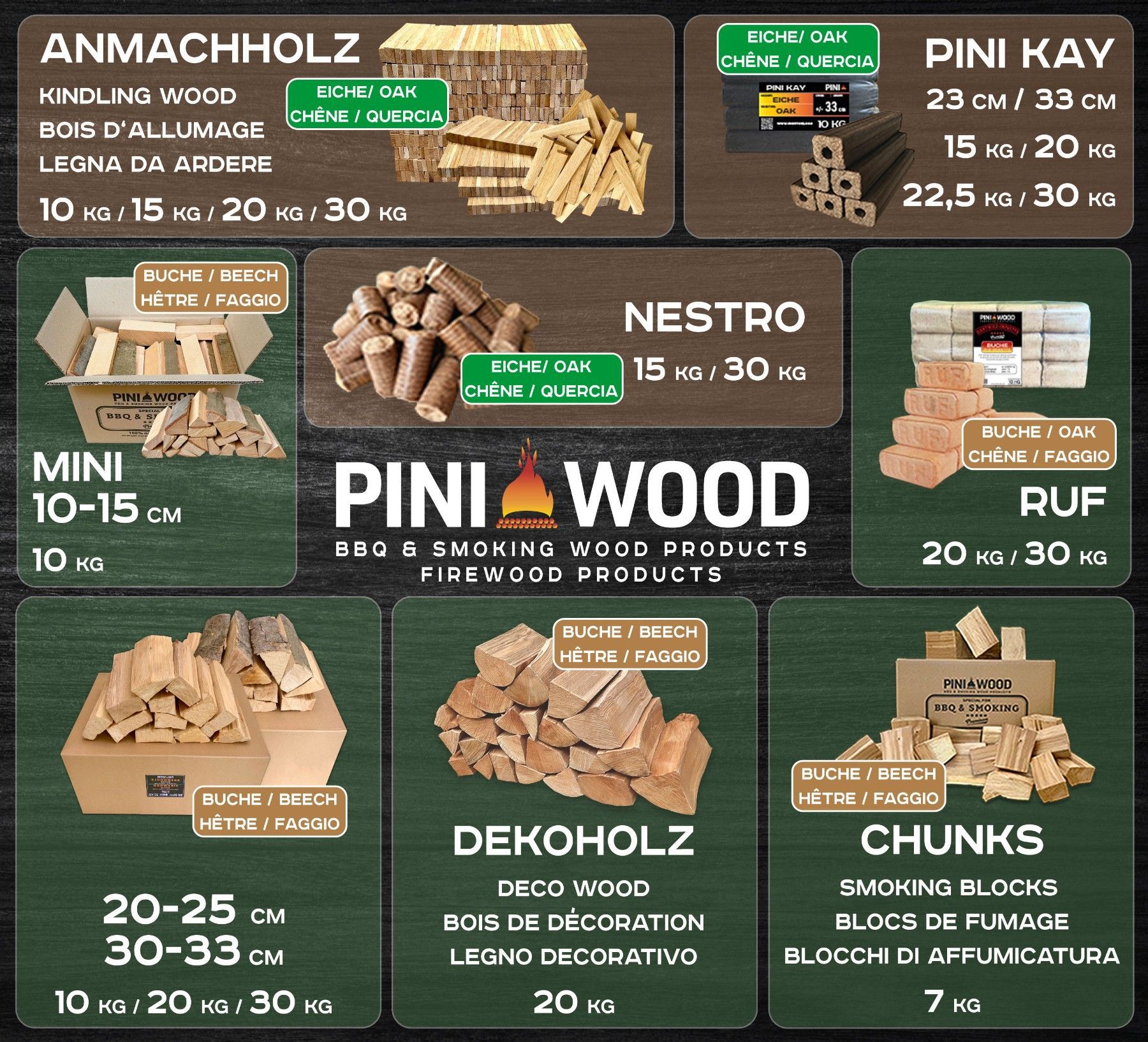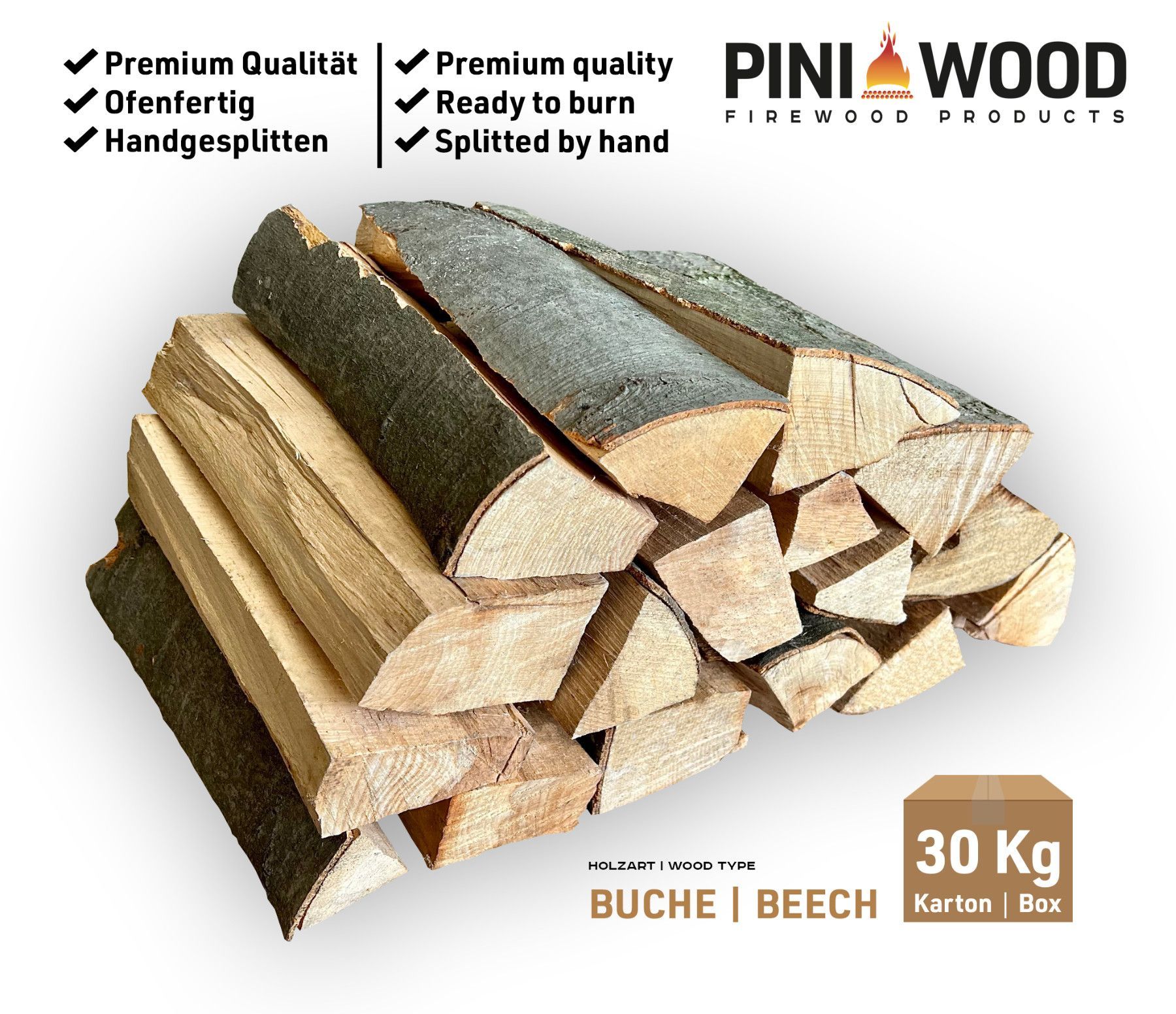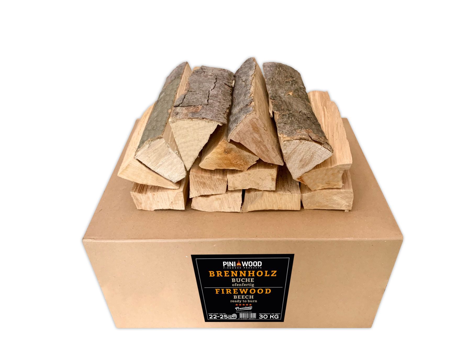 30 Kg PINI Brennholz Buche ca. 25 cm ofenfertig für Kamin Grill Feuerschale Ofen