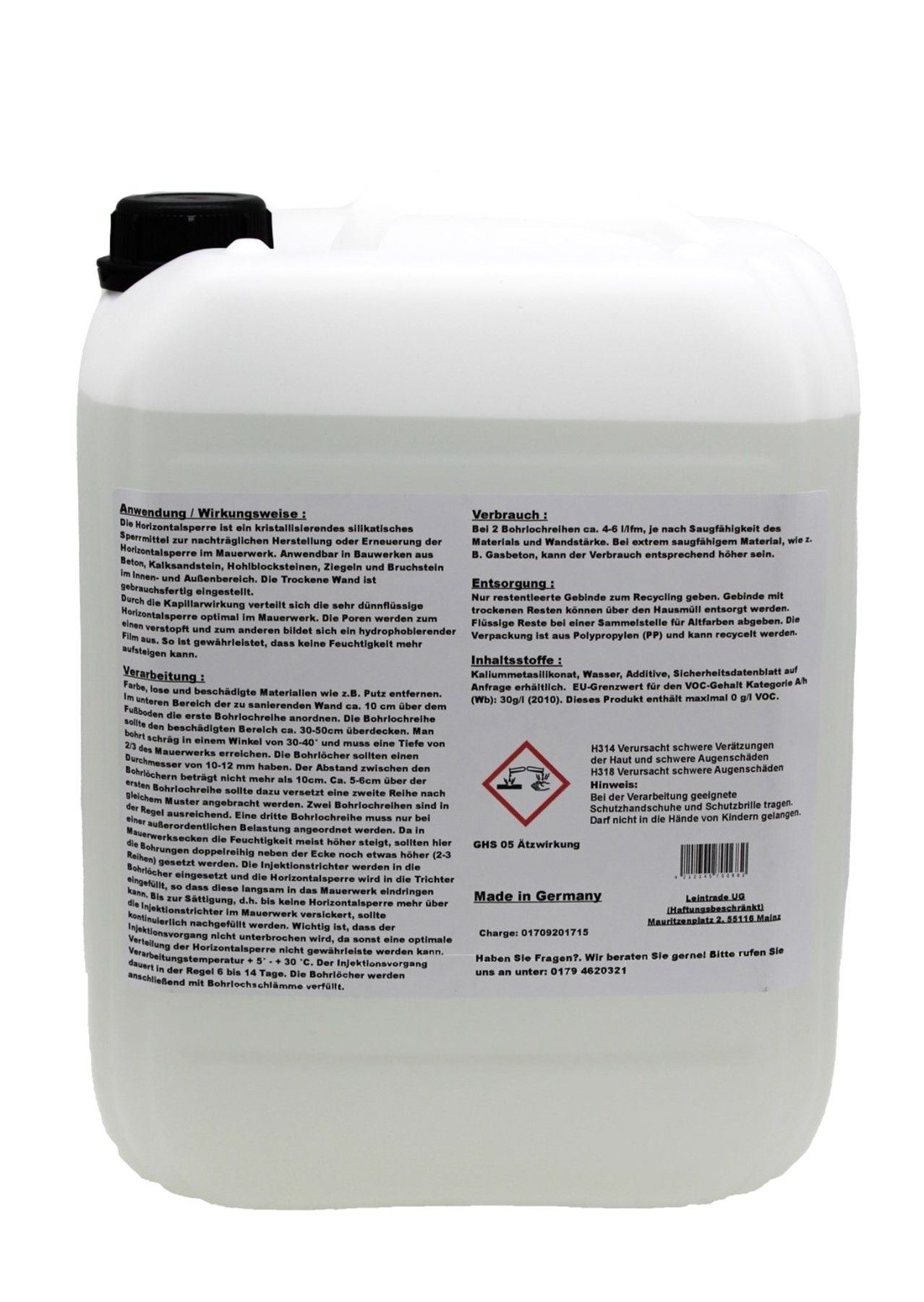 30 L Horizontalsperre Mauertrockenlegung Kellerabdichtung Trockene Wand