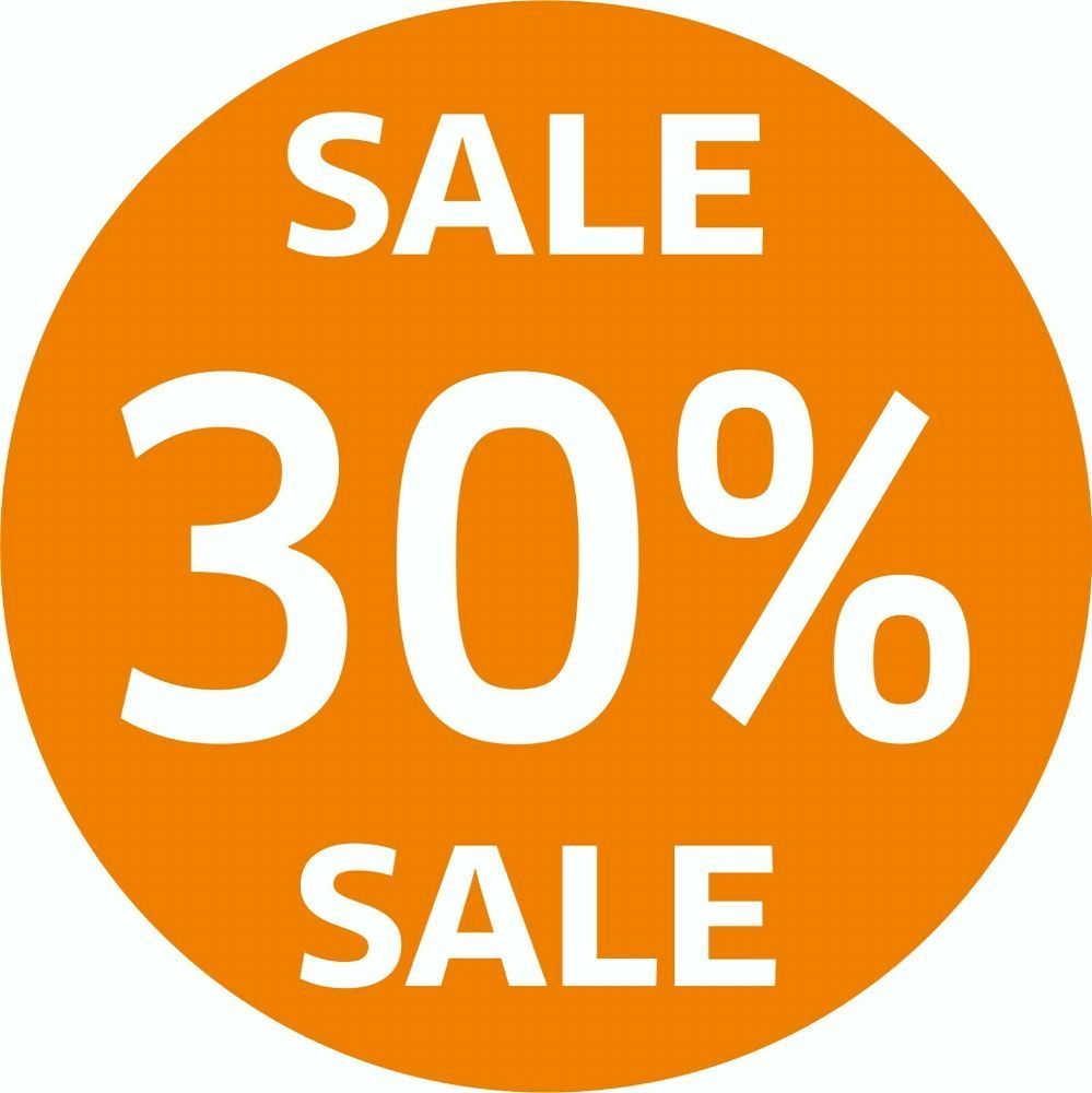 30% SALE Aufkleber Schaufenster Rabatt Ausverkauf Schlussverkauf SSV WSV orange