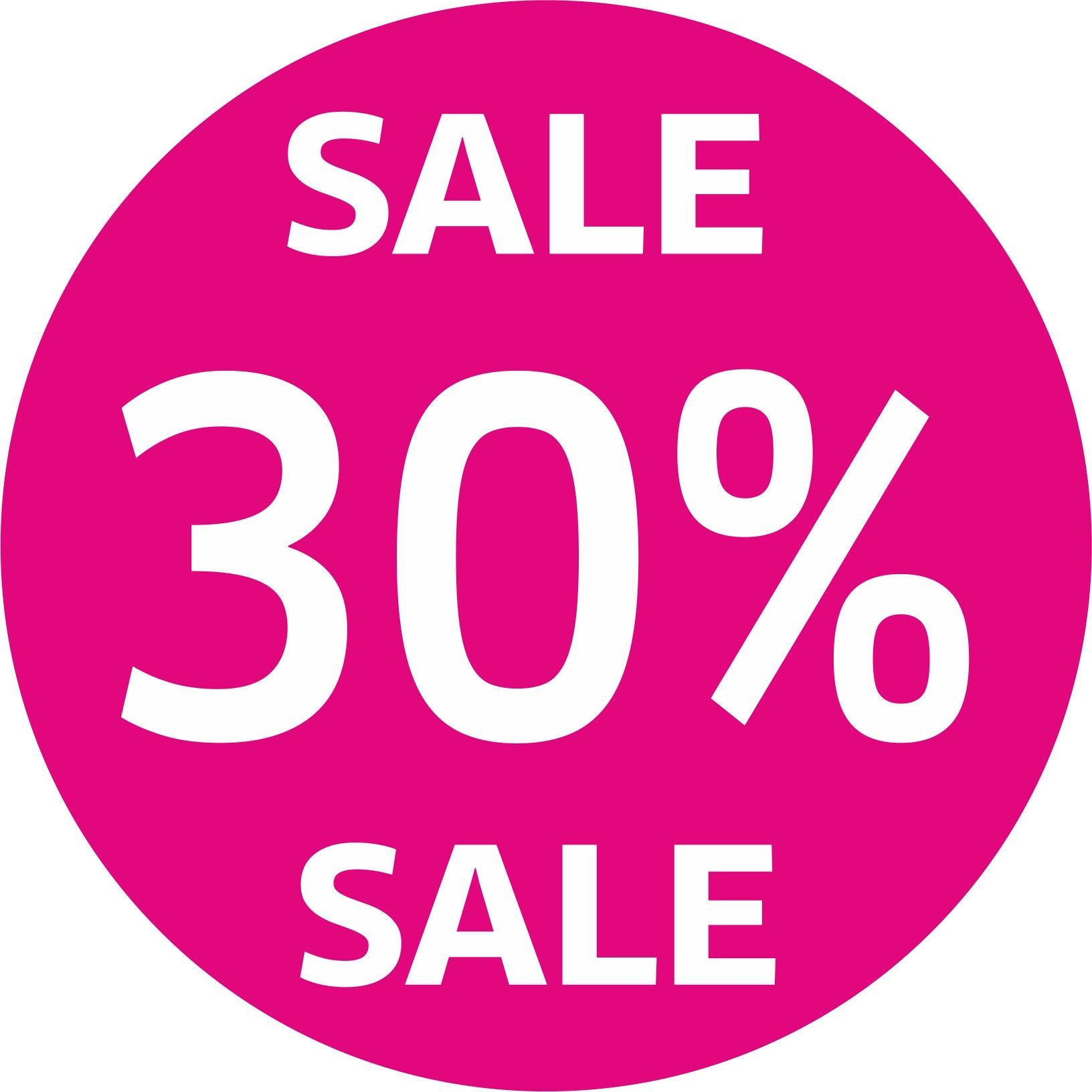 30% SALE Aufkleber Schaufenster Rabatt Ausverkauf Schlussverkauf SSV WSV % pink