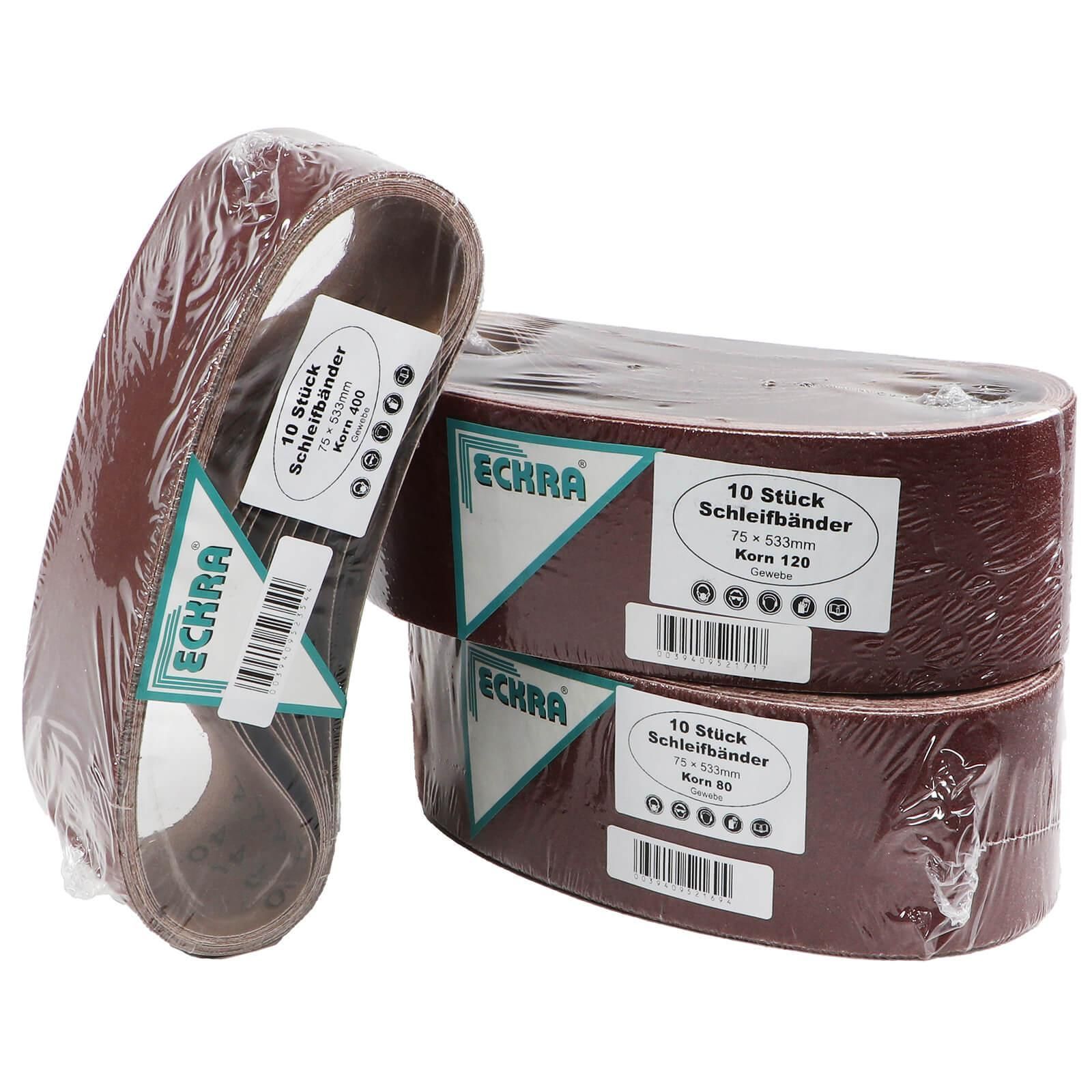 30 Schleifbänder 75x533 mm Mix Sortiment K80 120 400 Bandschleifer Schleifpapier