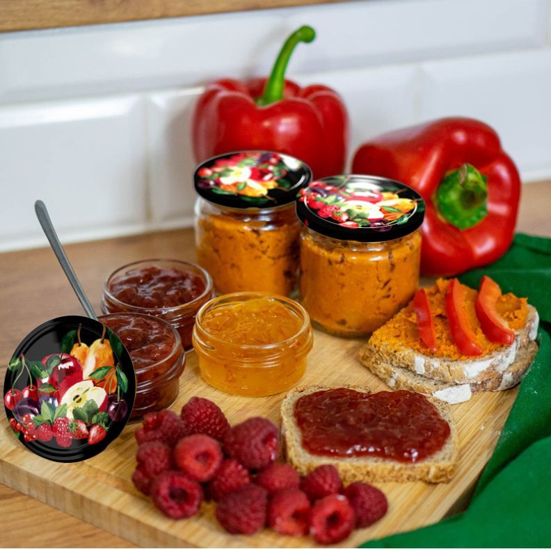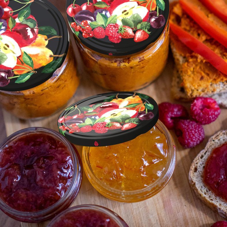 30 Stück Twist Off Deckel Schraubdeckel Ø 82 / Ø 66mm Deckel Gläser Schwarz OBST