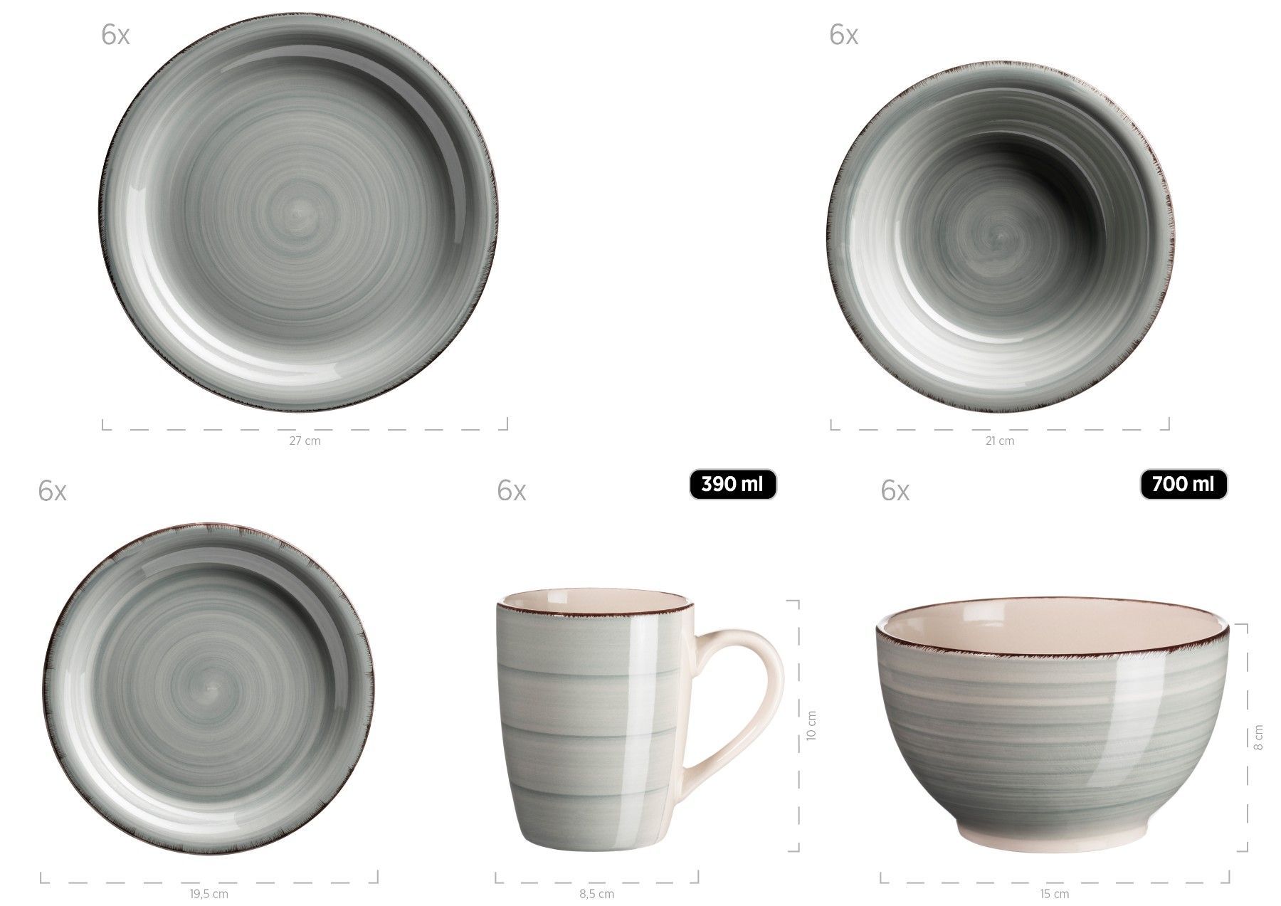 • Tafelservice Geschirr für 6 Personen Linea grau Ambition
