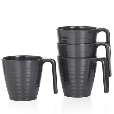 • Melamin Camping Geschirr Set 4 Personen I Tassen Stone 4-teilig (passend zu Red, Blue
