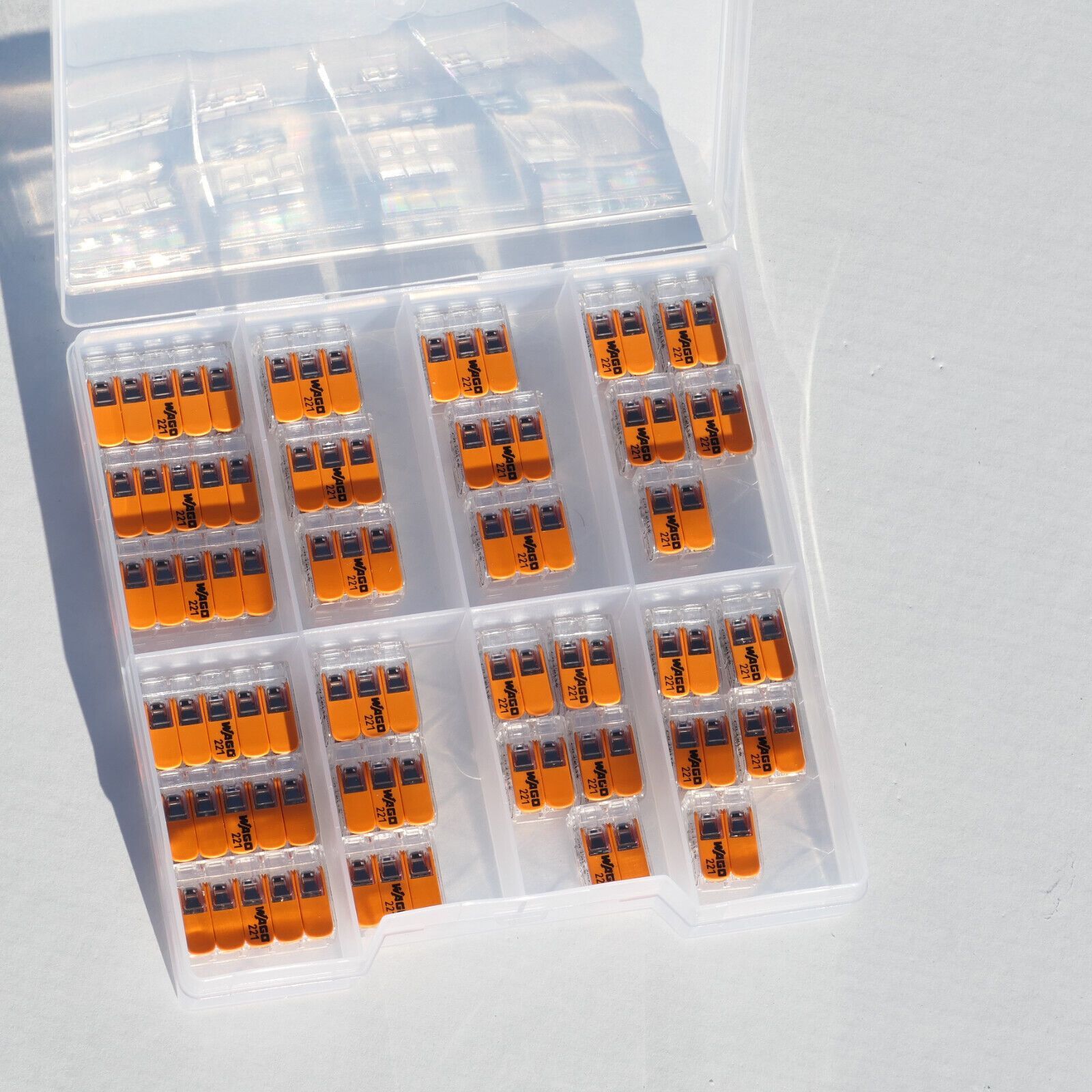 30 Wago Klemmen Sortiment im transparenten Sortierkasten 221-412 221-413 221-415