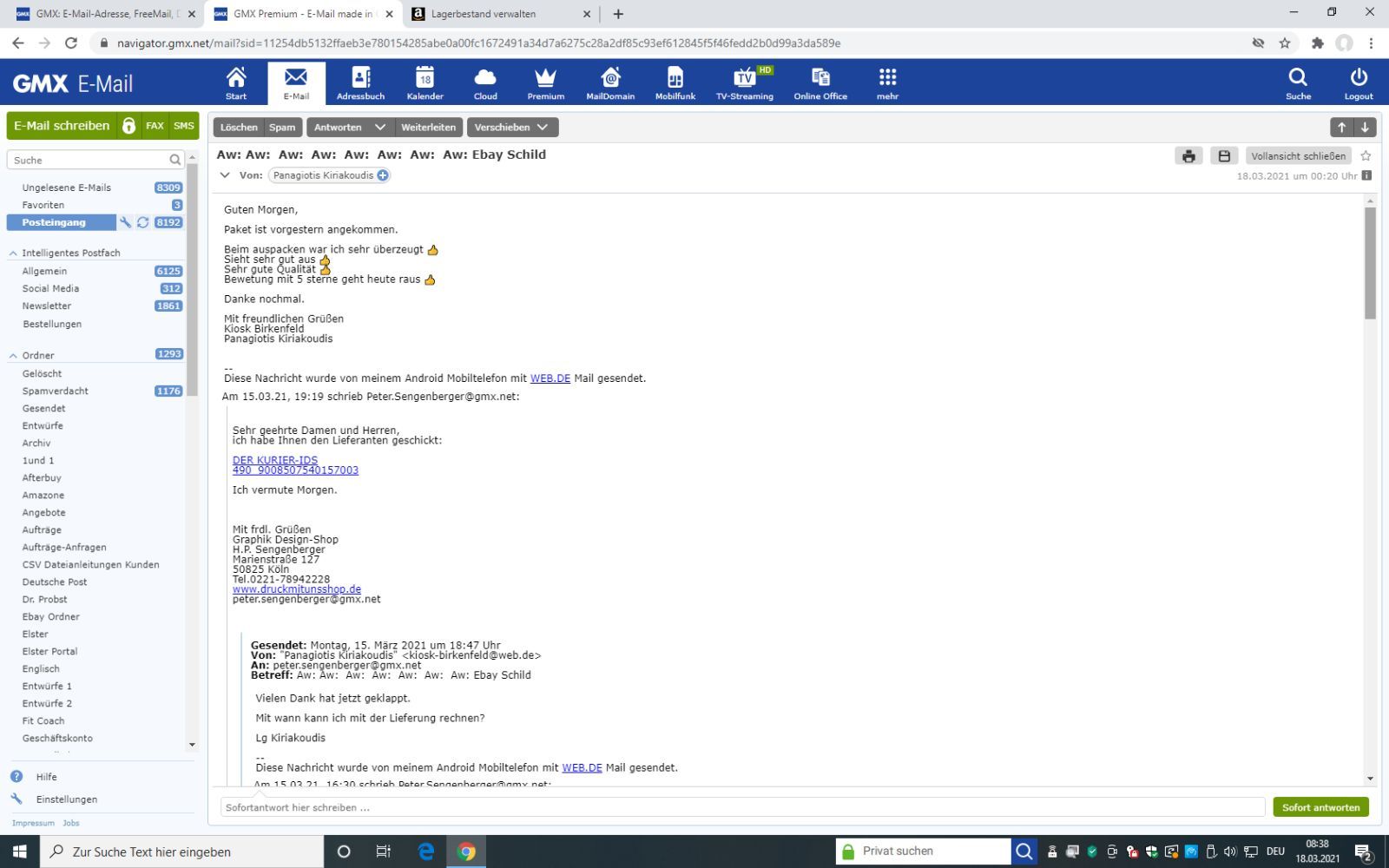 Zustellung: Mi, 8. Apr. bis Fr, 17. Apr.