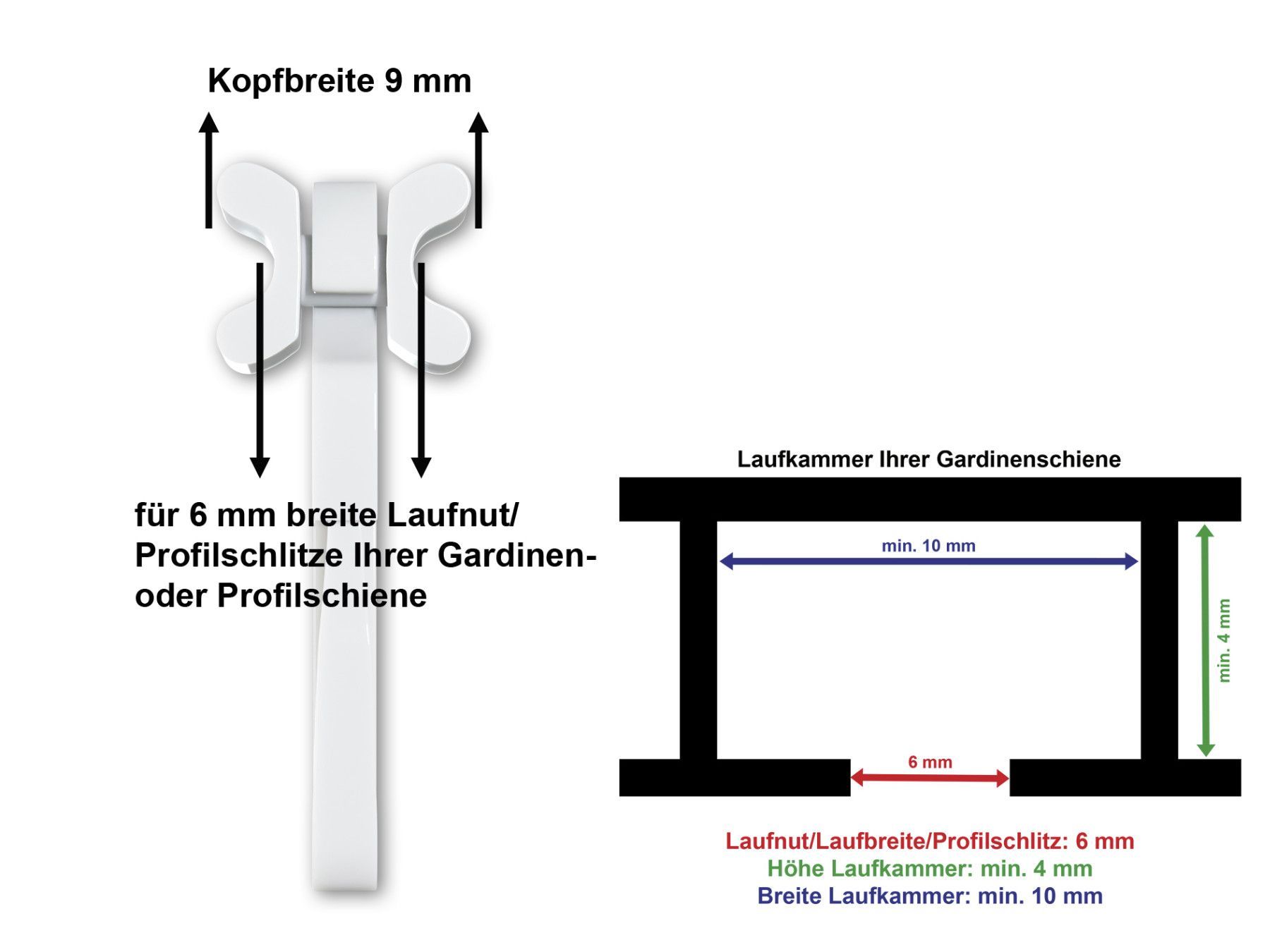 300 Stck. Faltengleiter / X-Gleiter für Gardinenschienen und Innenlaufschienen