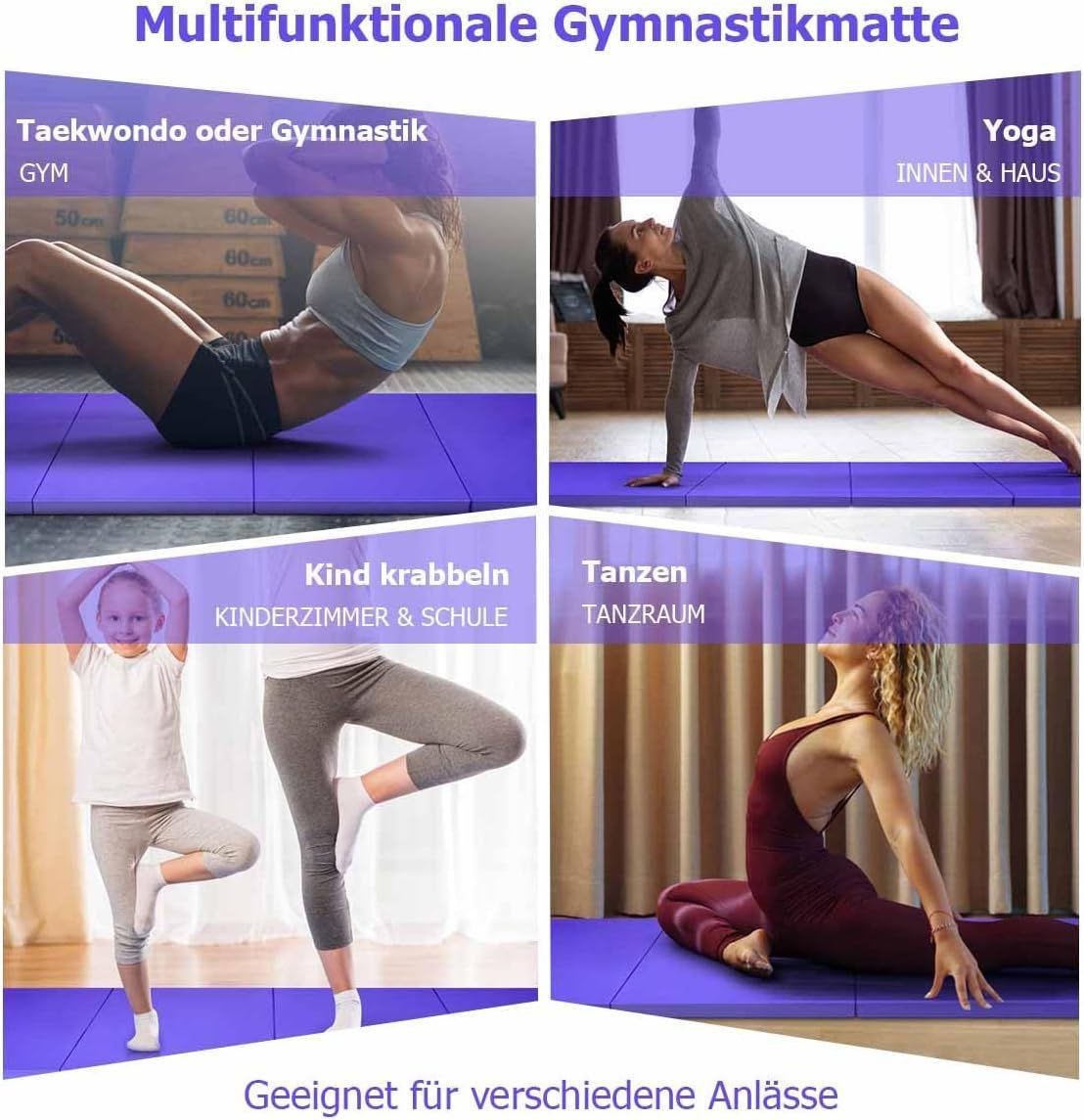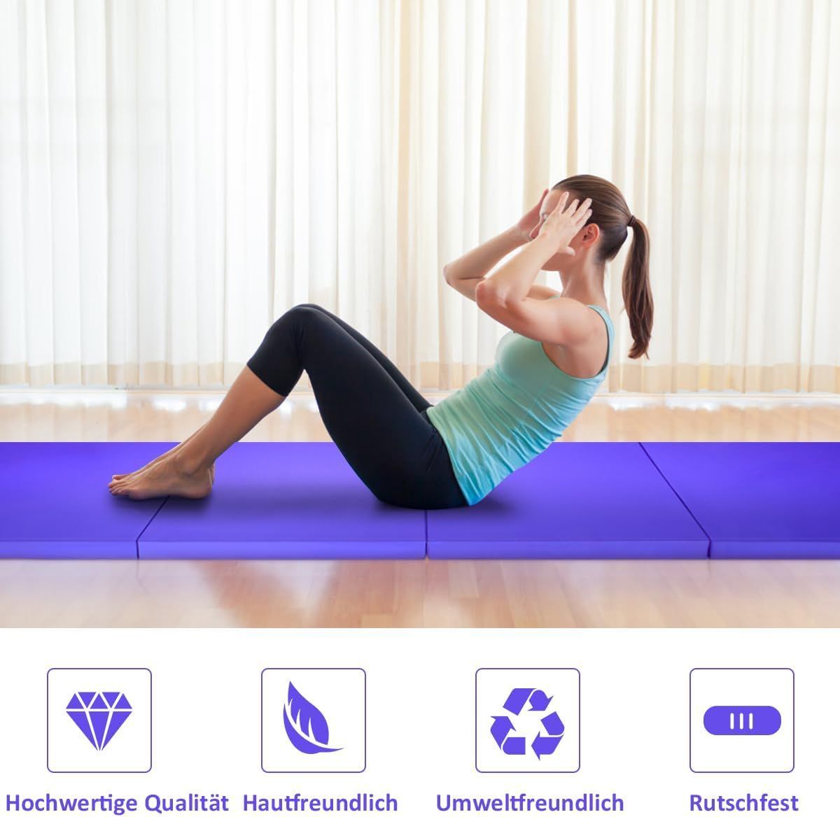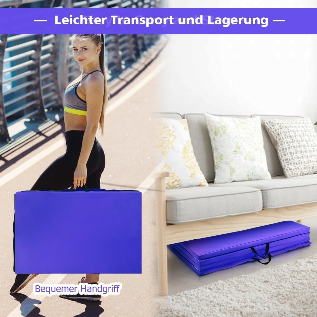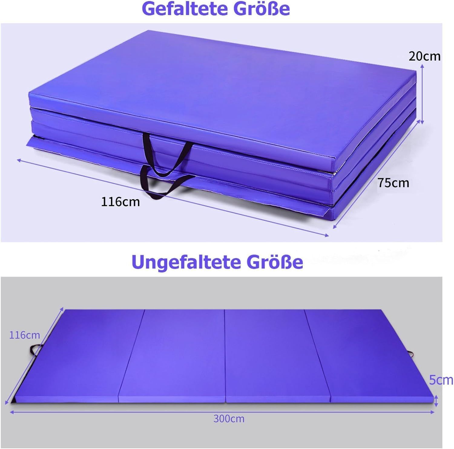 300 x 116 x 5 cm faltbare Gymnastikmatte, Sportmatte mit Klettverschlüssen und Griff