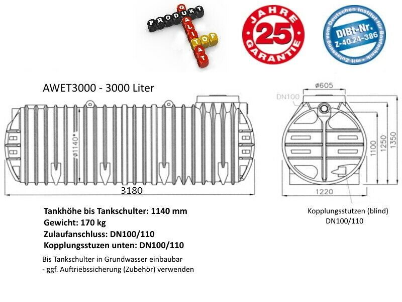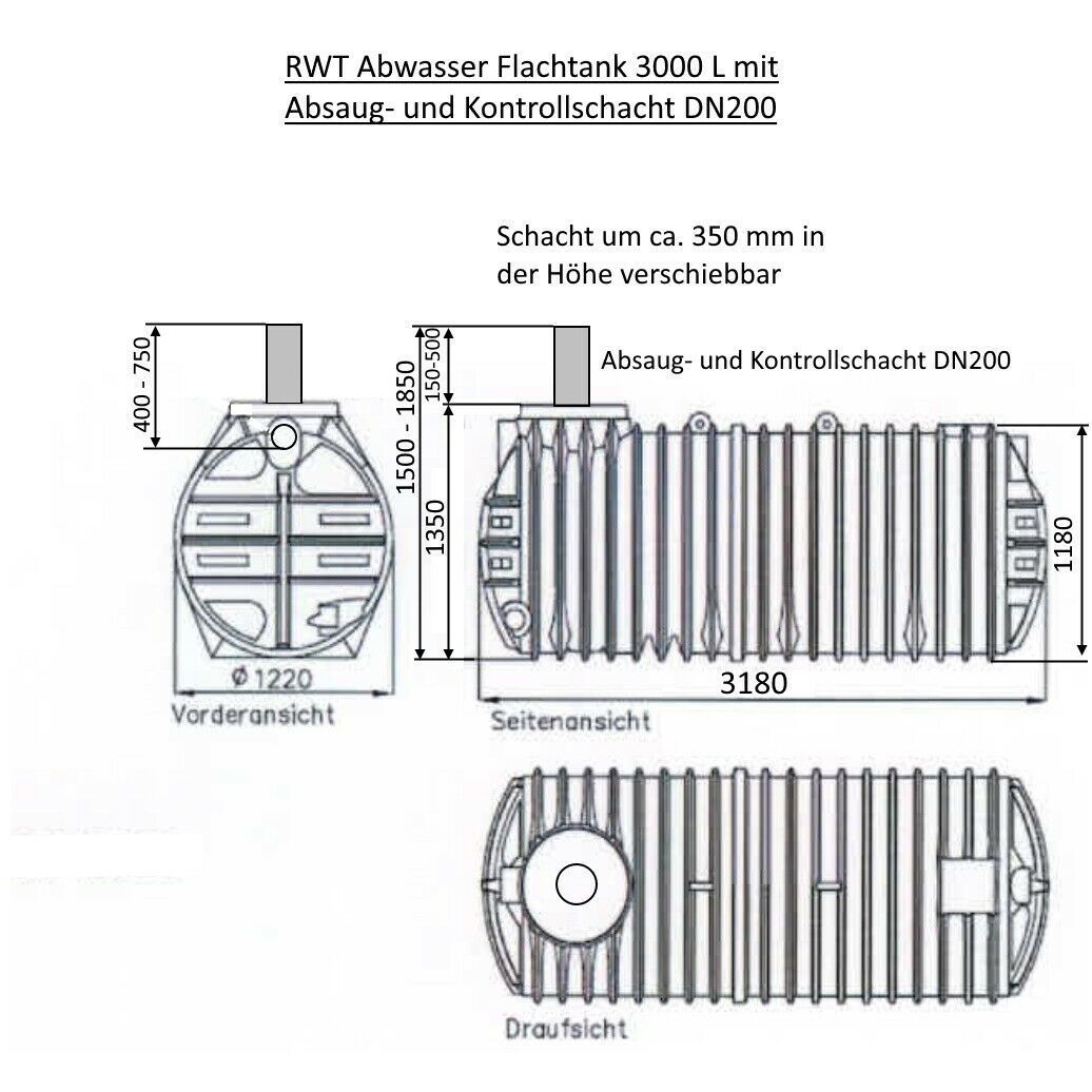 3000 L Abwassersammelgrube flacher Fäkalientank Abwassertank DIBT-Zulassung