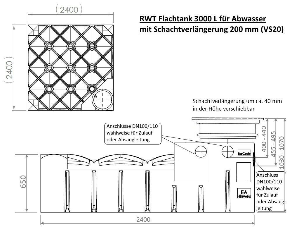 3000 L Abwassertank Abwassersammelgrube Fäkalientank Flachtank Sammelgrube