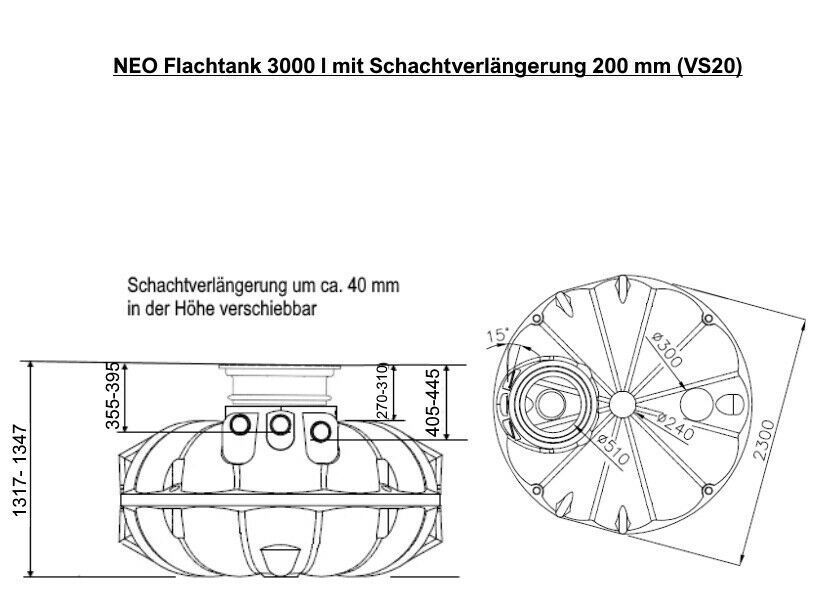 3000 L NEO Flachtank Regenwassertank Zisterne optional mit Schachtdeckel und Filter