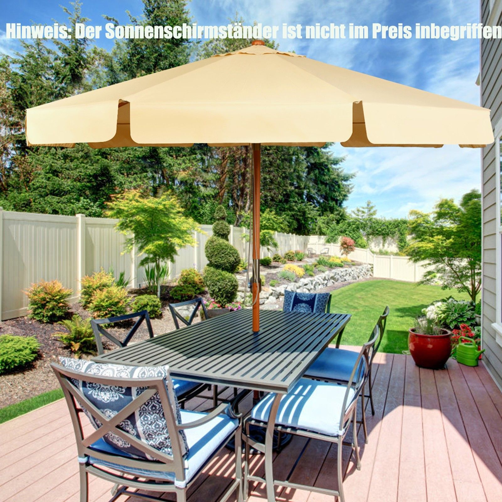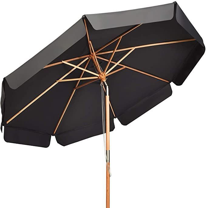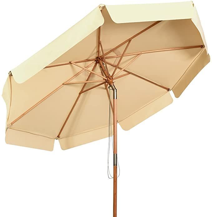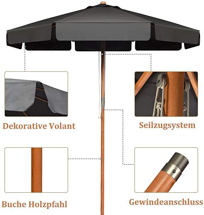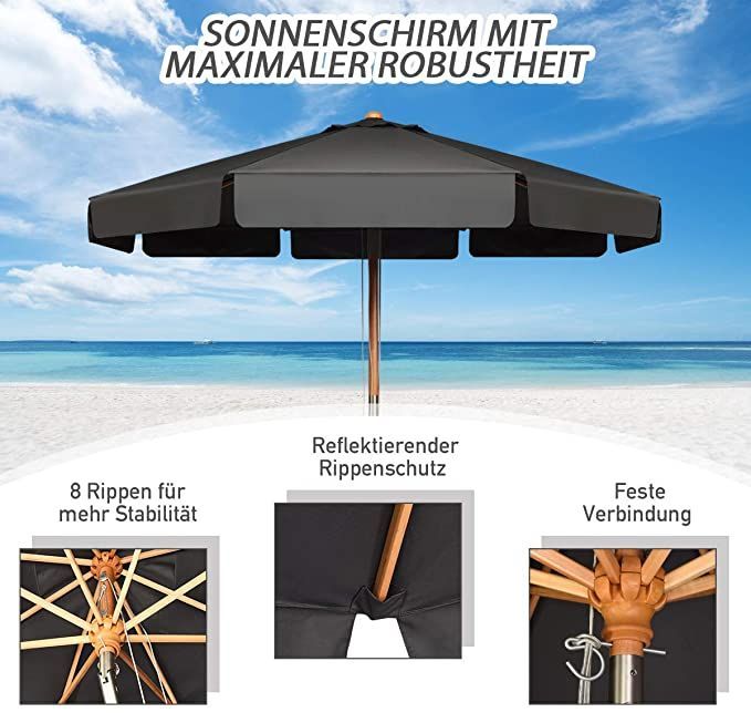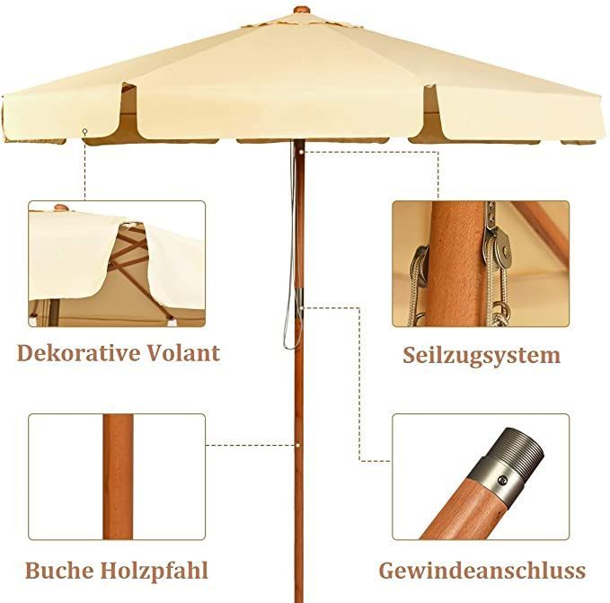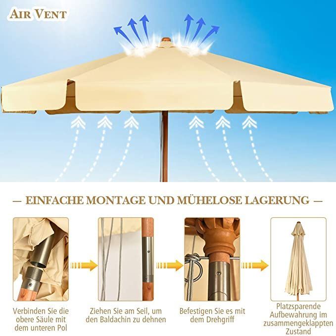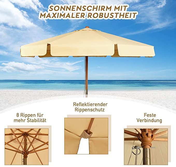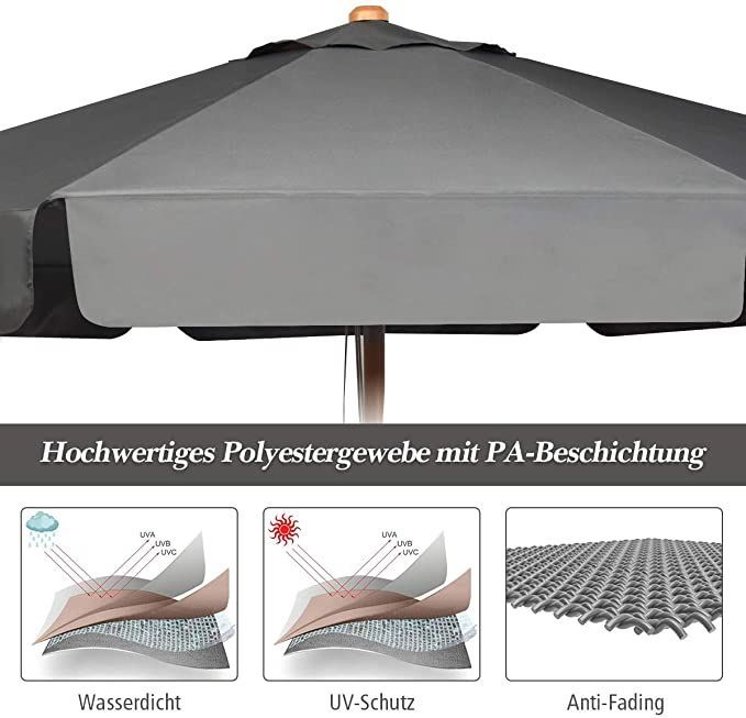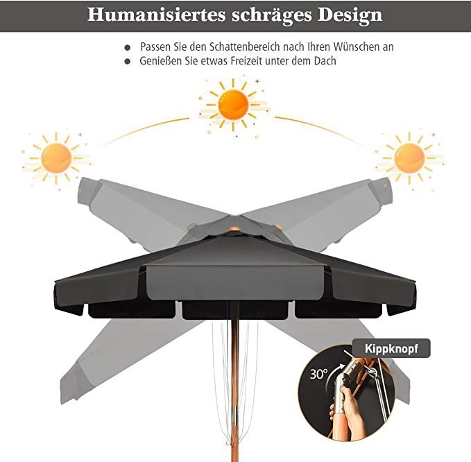 300cm Sonnenschirm Holz, Gartenschirm Kippbar Terrassenschirm Achteck Strandschirm