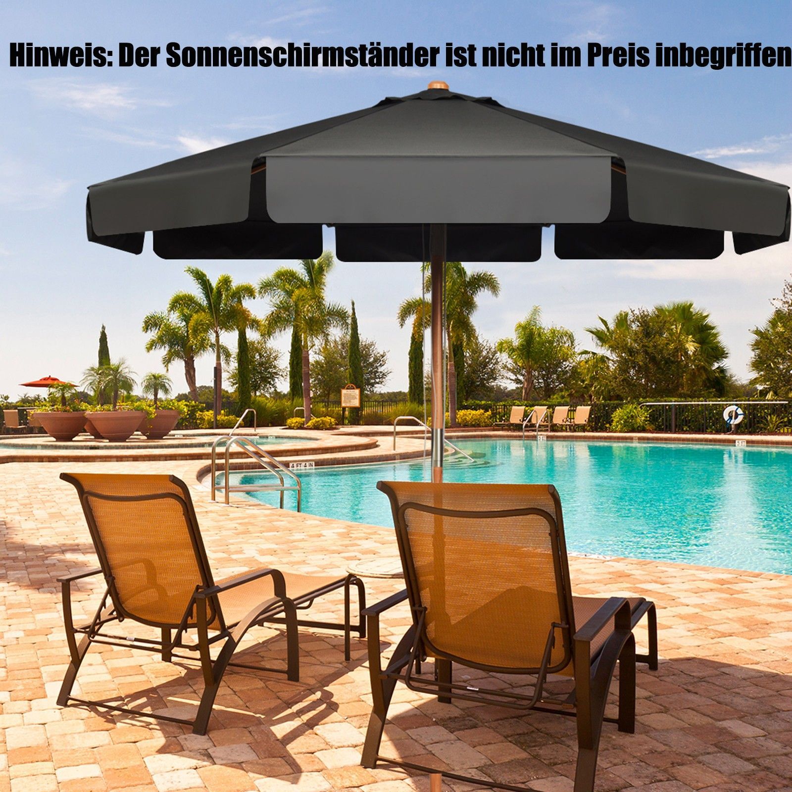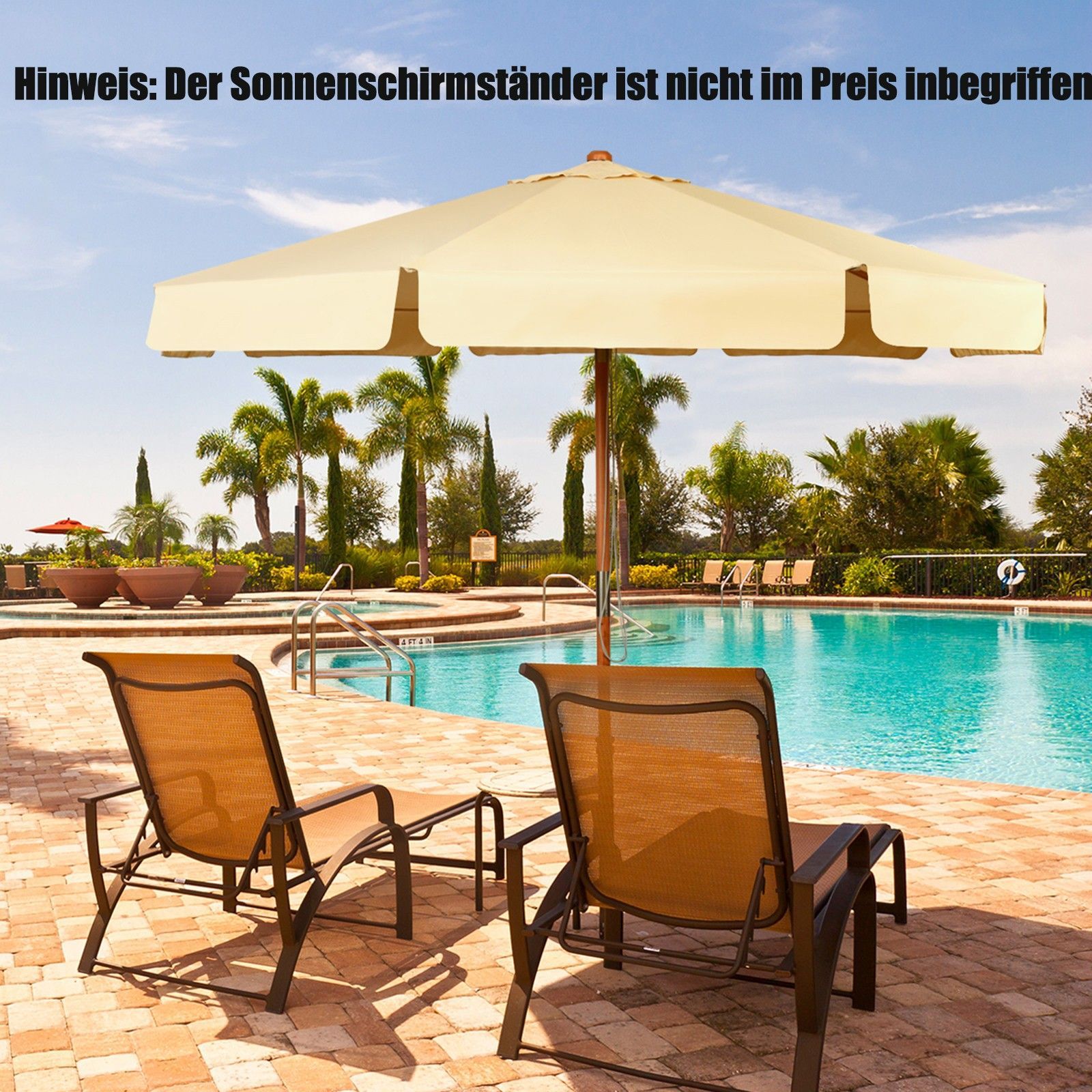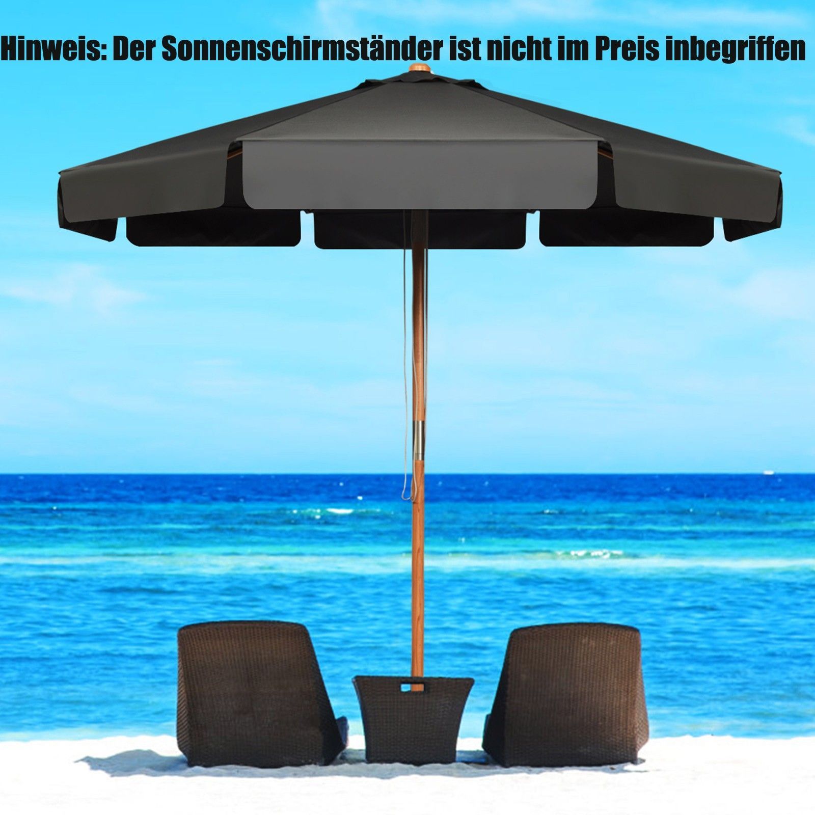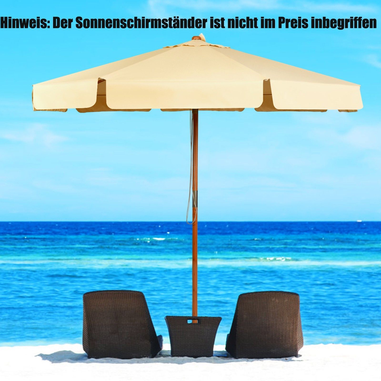 300cm Sonnenschirm Holz, Gartenschirm Kippbar Terrassenschirm Achteck Strandschirm