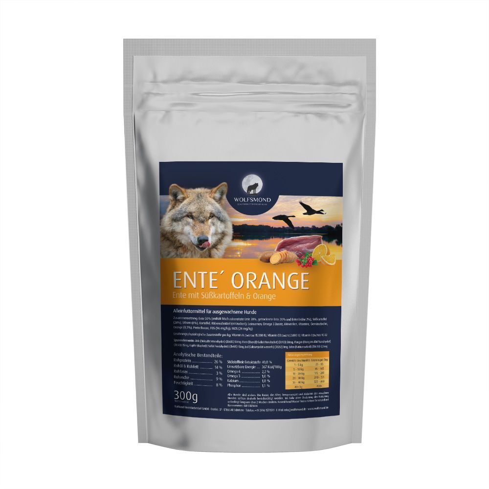 Ente´ Orange mit Süßkartoffeln & Spargel - 300g bestes Trockenfutter - Für ausgewachsene Hunde aller Rassen - Glutenfrei | Tierärztlich geprüft | Bekömmlich & Allergenarm
