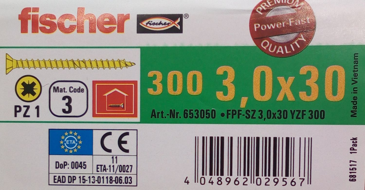 300x fischer Spanplattenschrauben 3,0x30 PZ1 Holzschrauben verzinkt Vollgewinde