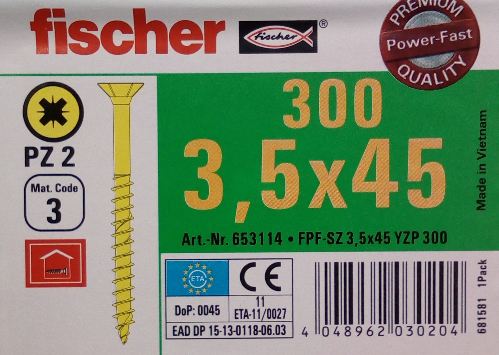 300x fischer Spanplattenschrauben 3,5x45 PZ2 Holzschrauben verzinkt Teilgewinde