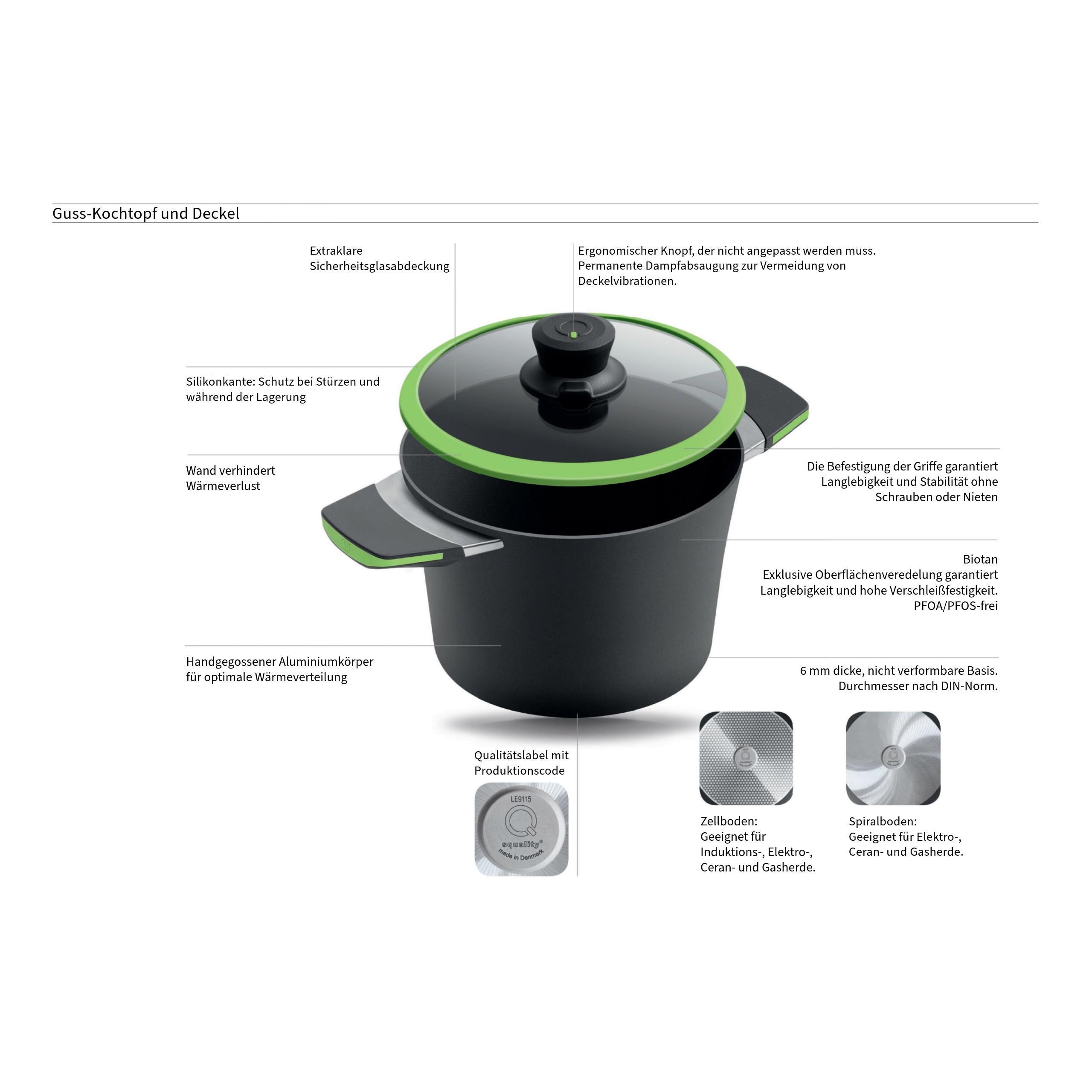 30401 Squality Guss-Kochtopf 4.0l Volumen, 24cm, fettfrei, Anthrazit, Ceran/Gas