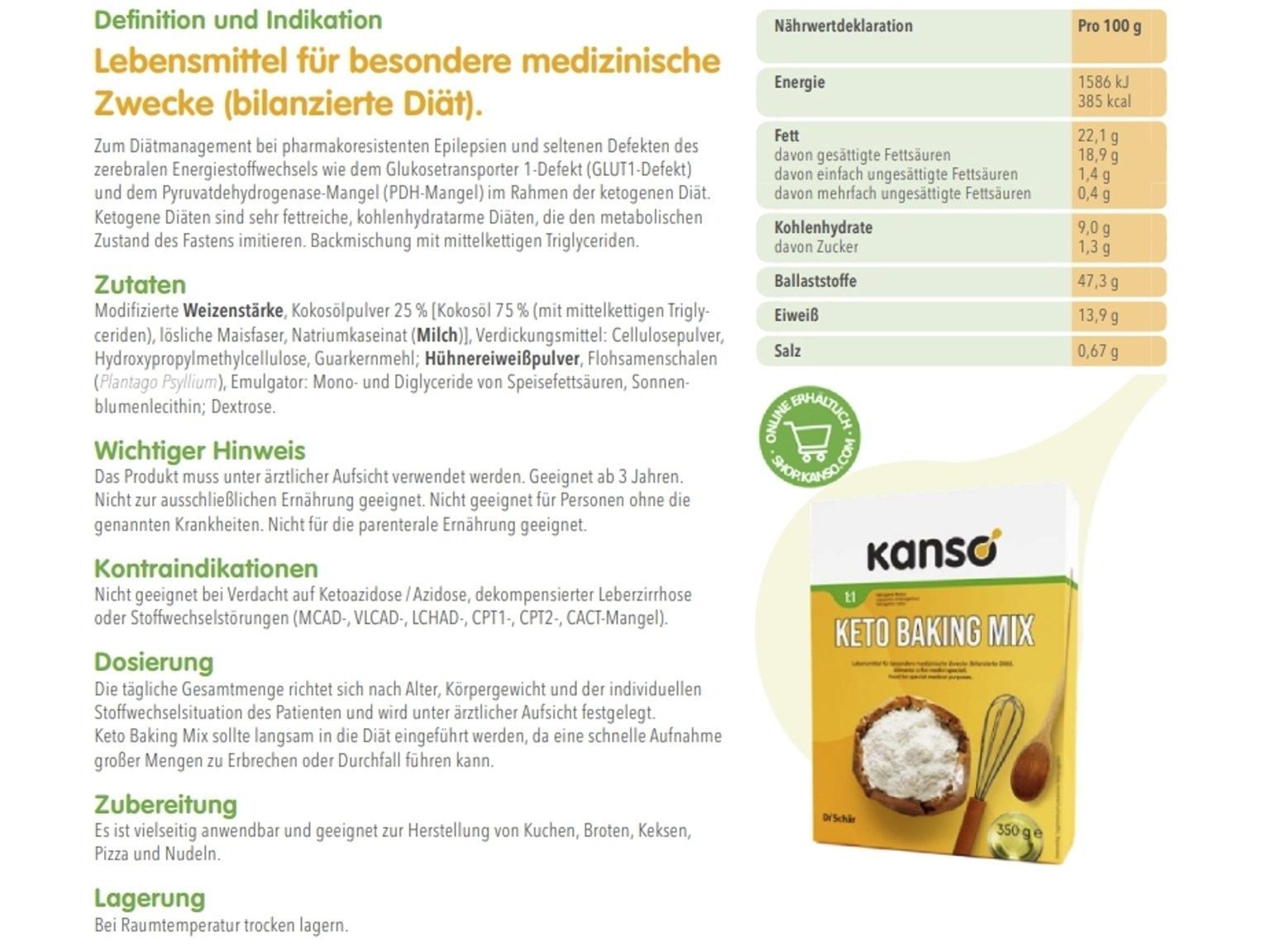 31,14 €/ kg | Kanso Keto Baking Mix 350g Backmischung