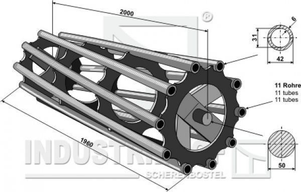 312-200-590 Rohrpackerwalze 2000 (Walzendurchmesser Ø595 mm) Rohrpackerwalze 2000 Technische Details: - Bestellnr.: 312-200-590 - Gewicht: 150.000 kg - Arbeitsbreite: 1960 mm - Einbaumaß: 2000 mm - Walzendurchmesser: Ø 595 mm - Wellendurchmesser: Ø 50 mm Weitere Details siehe Bi