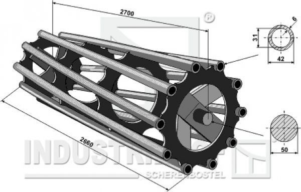 312-270-480 Rohrpackerwalze 2700 (Walzendurchmesser Ø480 mm) Rohrpackerwalze 2700 Technische Details: - Bestellnr.: 312-270-480 - Gewicht: 180.000 kg - Arbeitsbreite: 2660 mm - Einbaumaß: 2700 mm - Walzendurchmesser: Ø 480 mm - Wellendurchmesser: Ø 50 mm Weitere Details siehe Bi