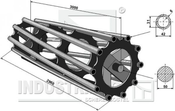 312-300-480 Rohrpackerwalze 3000 (Walzendurchmesser Ø480 mm) Rohrpackerwalze 3000 Technische Details: - Bestellnr.: 312-300-480 - Gewicht: 200.500 kg - Arbeitsbreite: 2960 mm - Einbaumaß: 3000 mm - Walzendurchmesser: Ø 480 mm - Wellendurchmesser: Ø 50 mm Weitere Details siehe Bi