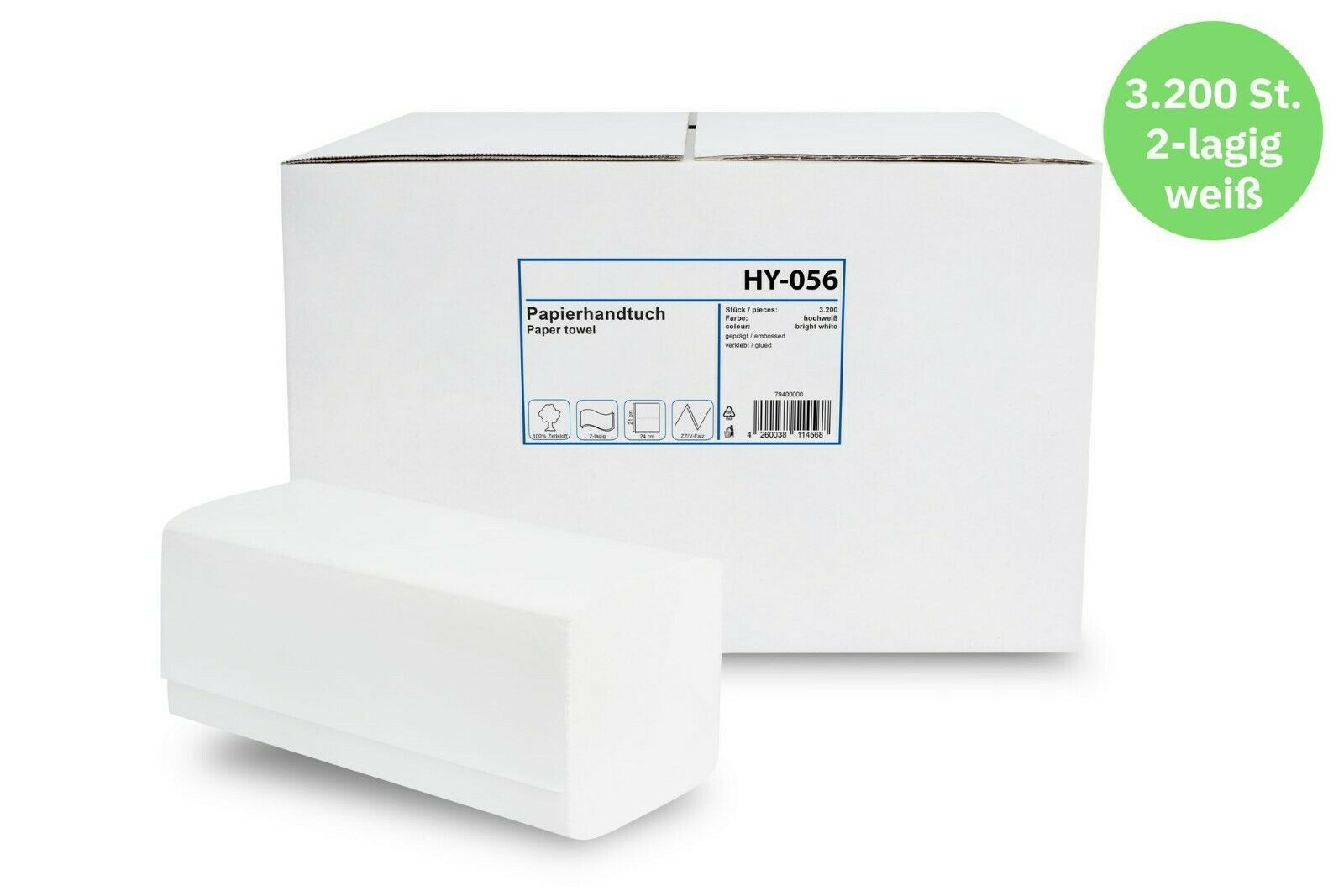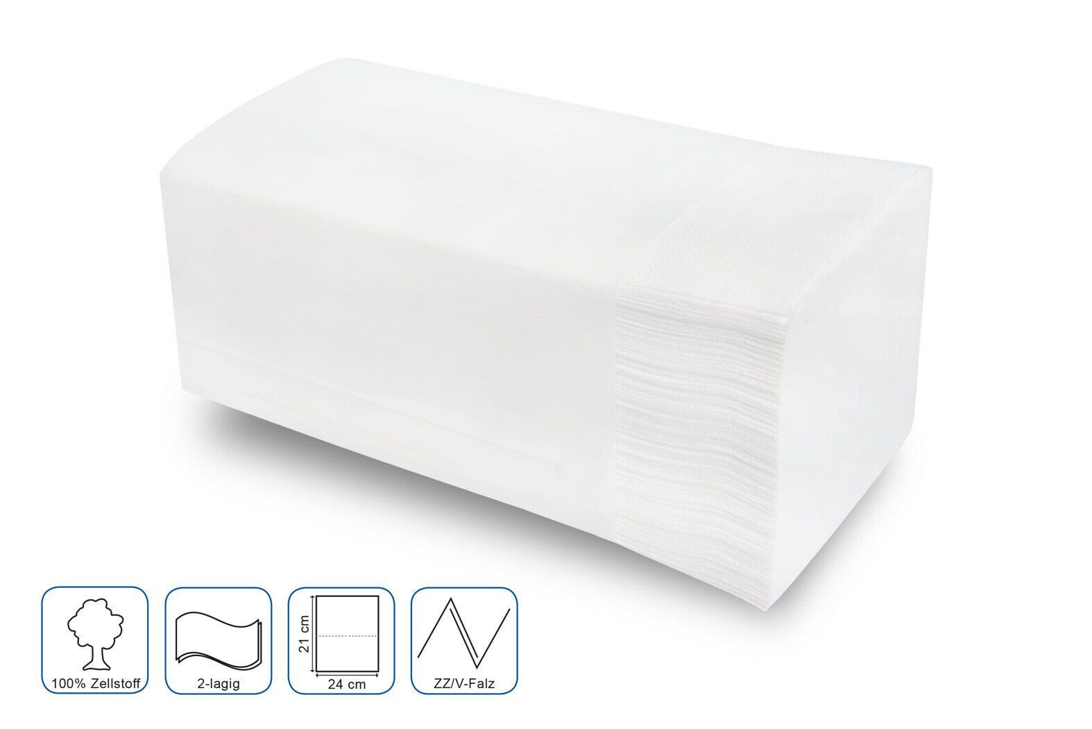 3200 Blatt Papierhandtücher 2-lagig ZZ/ V-Falz Zellstoff hochweiß 24x21cm Tücher