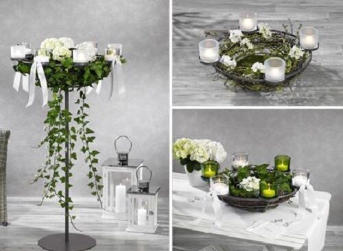 Eisenkranz Schale ARTIKEL 323005420 1 x Kaheku Eisen Schale Novara Farbe: Weiss Material: Eisen Maße: Durchmesser 48cm, Höhe 14cm Neu Der Kranz, die Schale wird ohne Kerzen geliefert. Die pulverbeschichteten Dekoartikel der Serie Novara, welche aus Eisen hergestellt werden, eignen sich für jedes Amb