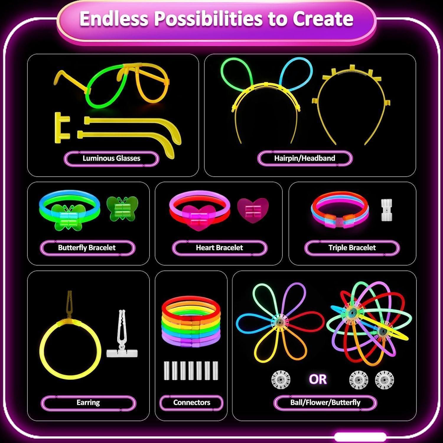 326er Neon Knicklichter Party Set mit 150 Leuchtstäben & 176 Verbinder