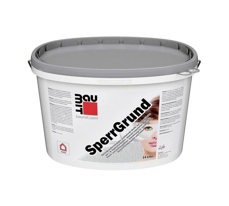 32x Baumit SperrGrund 14 Liter weiß Details für SperrGrund 14 Liter weiß: Grundierung zur Verhinderung von Lignindurchblutungen Grundierung für Gipskartonplatten, Putze und Holzfaserplatten, zur Verhinderung von Lignindurchblutungen, isoliert Wasser- und Nikotinflecken, gute Absperrwirkung, geruchsn