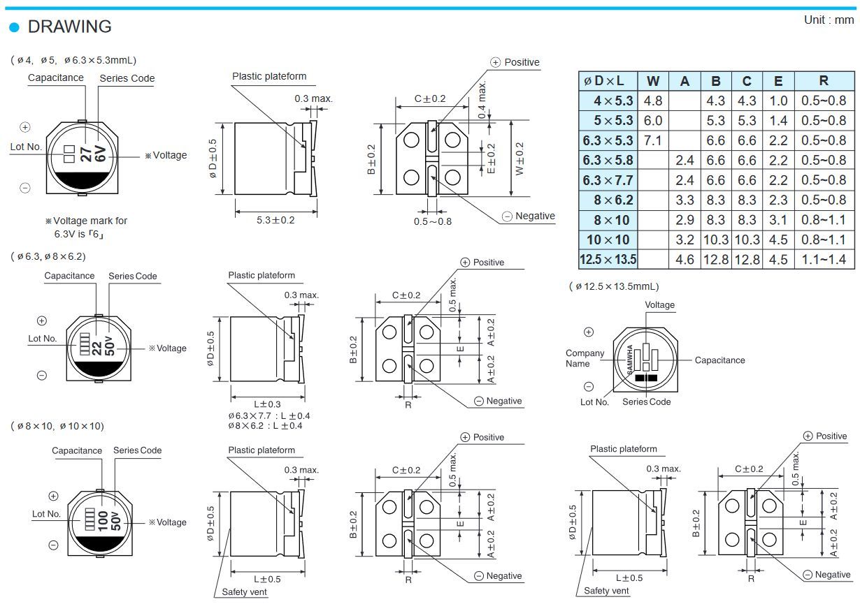 Bei diesem Bauteil handelt es sich um einen aluminium-elektrolytischen SMD-Kondensator, häufig kurz als Elko bezeichnet. Elektrolytische Kondensatoren nutzen eine dünne Oxidschicht als Dielektrikum und ein leitfähiges Elektrolyt, wodurch sie ein hohes Kapazitäts?zu?Volumen?Verhältnis erreichen. Die Bauform als oberflächenmontierbares Bauelement (SMD/SMT) richtet sich an automatisierte Fertigungsprozesse und platzkritische Leiterplattenlayouts; di