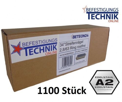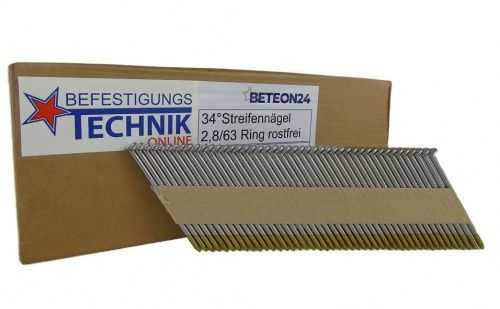 34° Streifennägel 2,8x63mm Ring rostfrei A2 papier für Nagler Paslode Senco Tjep Haub