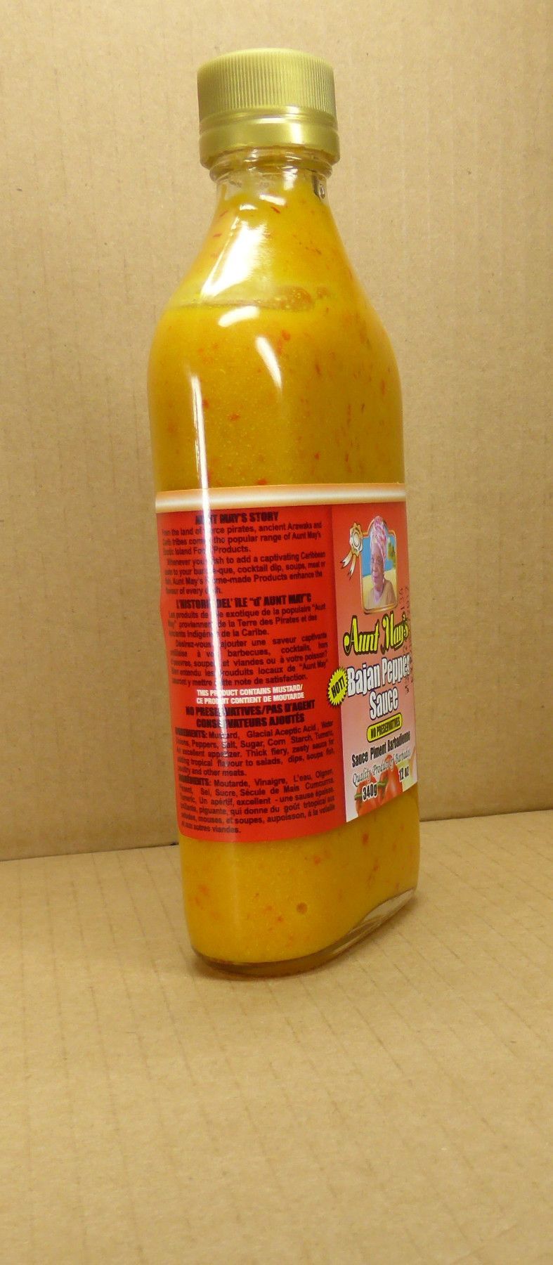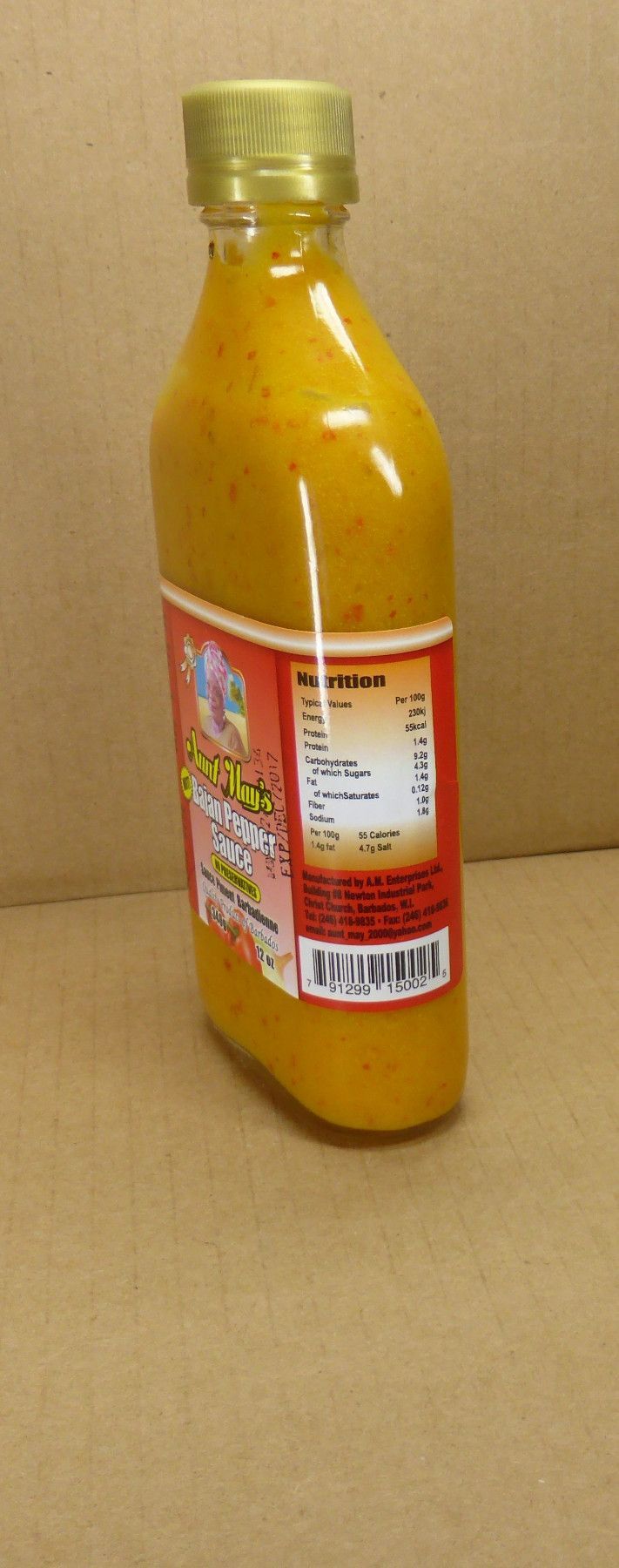 340gr Bajan Hot Pepper Sauce/Pfeffersosse Aunt May von der Sonneninsel Barbados
