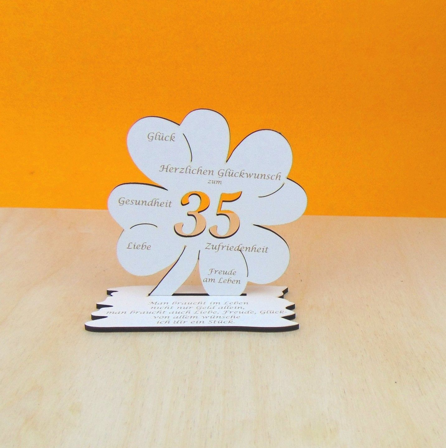 35. Geburtstag Geldgeschenk und Gutschein Kleeblatt 11 cm Vintage weiss 11