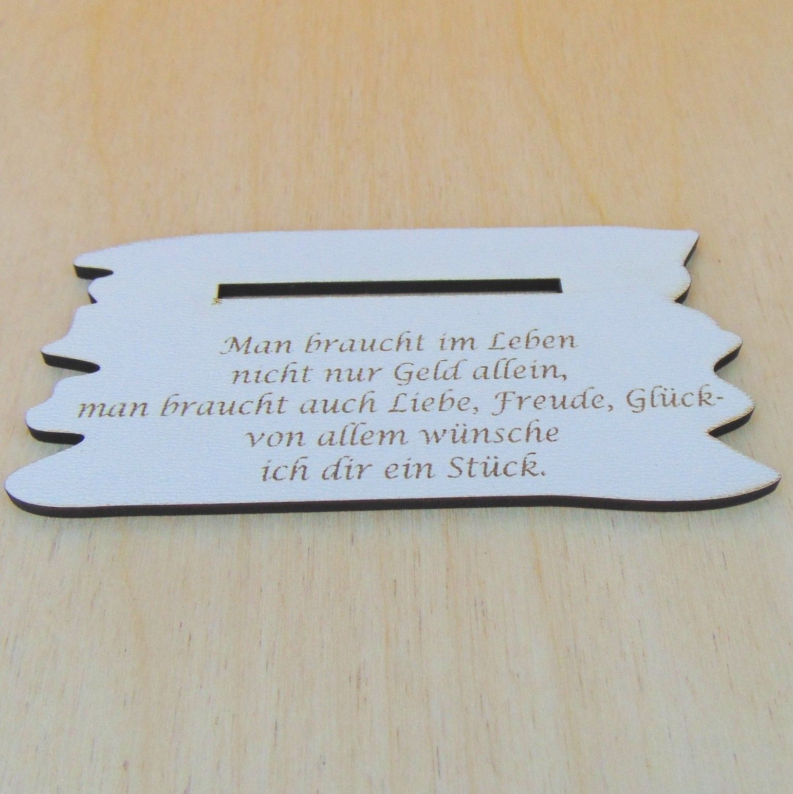35. Geburtstag Gutscheingeschenk als Kleeblatt in 11 cm im Vintage Style, Weiß. Ein Halter auf der Rückseite dient für einen Gutschein oder ihr Geldscheine. Beidseitig in der Farbe: Vintage Weiß beschichtet mit Gravierten Text. Man braucht im Leben nicht nur Geld allein, man braucht auch Liebe, Freude, Glück- von allem wünsche ich dir ein Stück. Unterplatte sind in 14 verschiedenen Sprüchen erhältlich, siehe Shop. Alle Geburtstagszahlen sind erhältlich. holzteilchen_diy