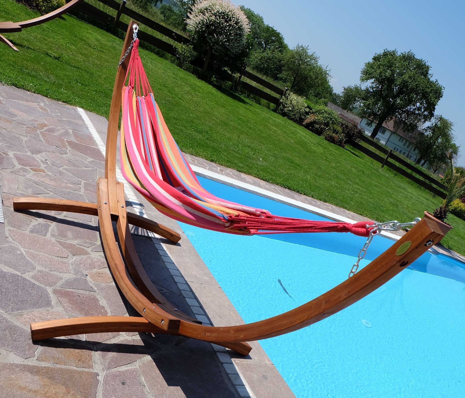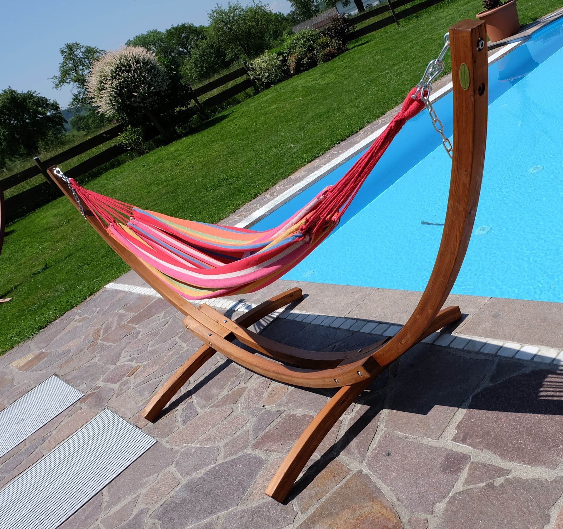 350cm Hängemattengestell Gestell aus Holz Lärche mit Hängematte Tuchhängematte