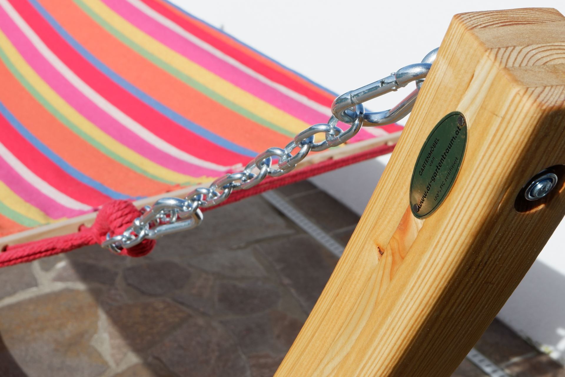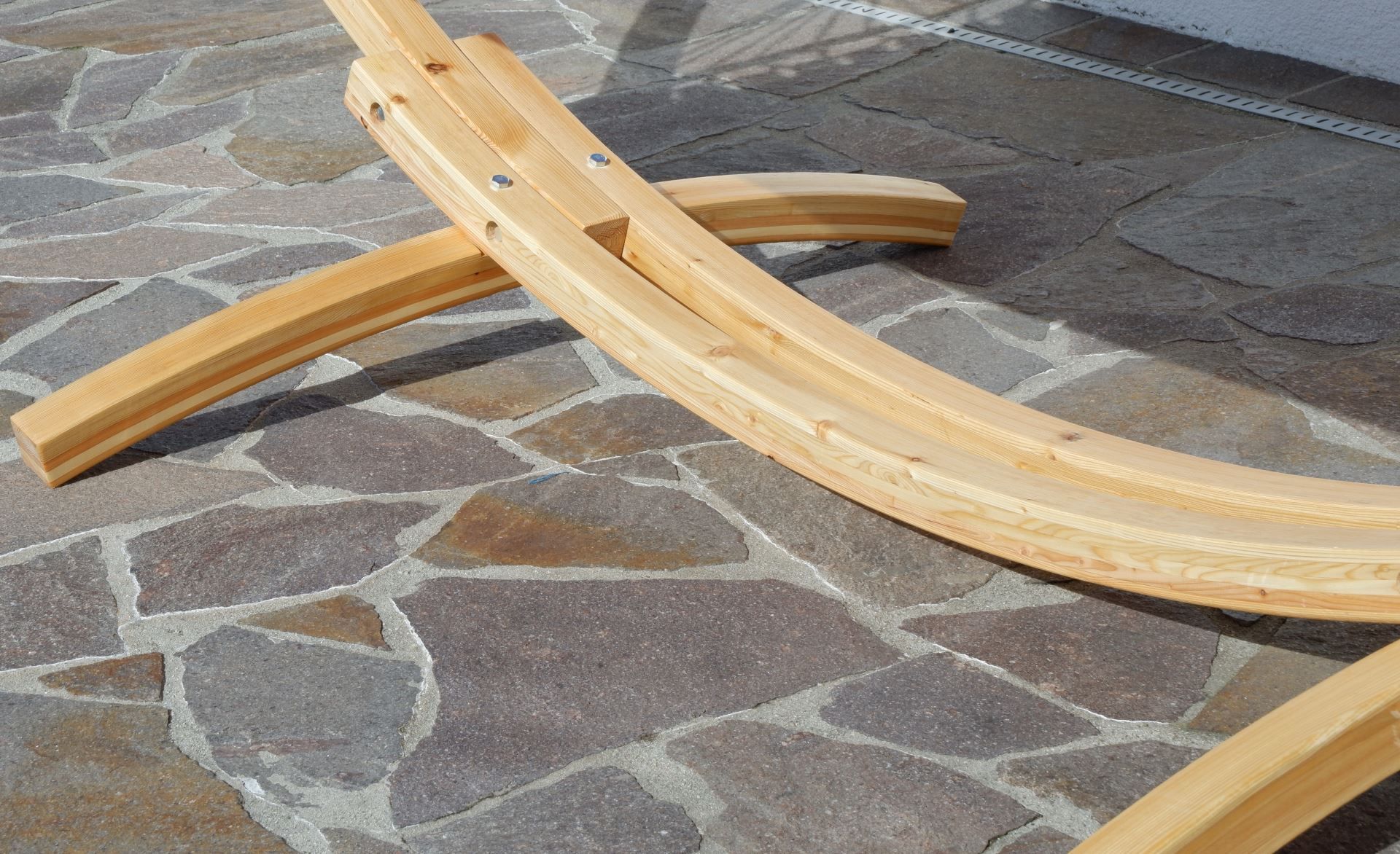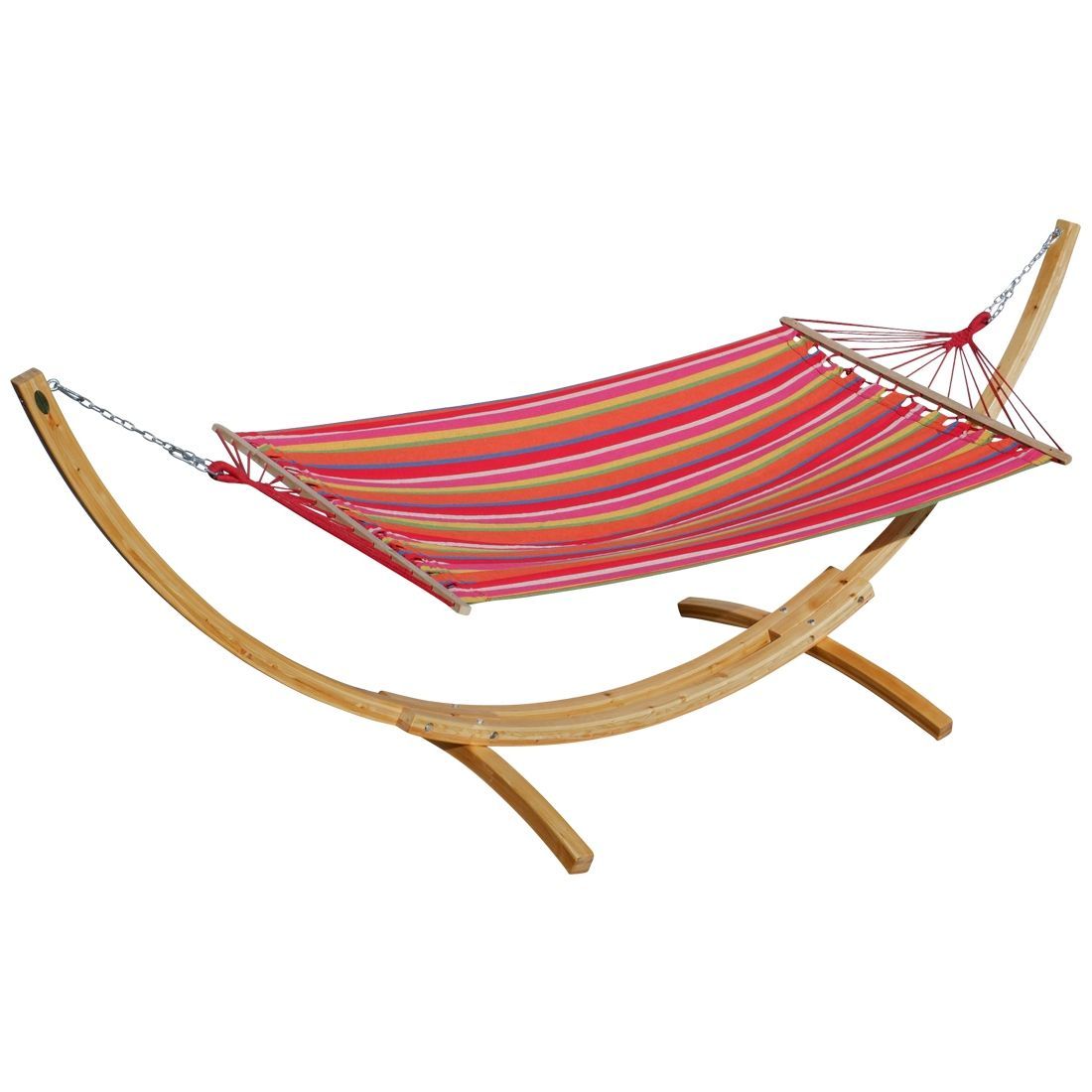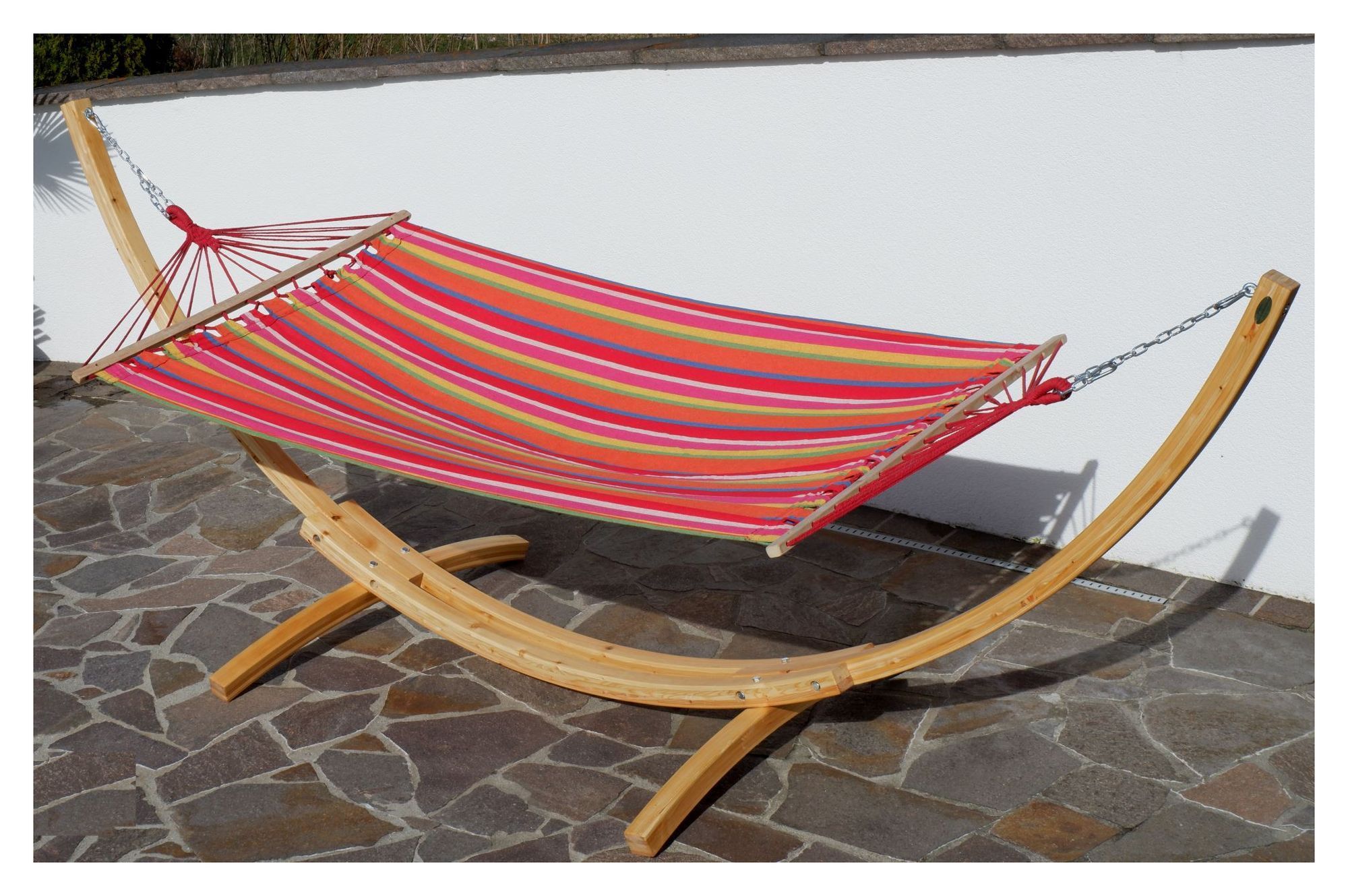 350cm Hängemattengestell NATUR ALICIA Holz Lärche natur bunter Stab Hängematte