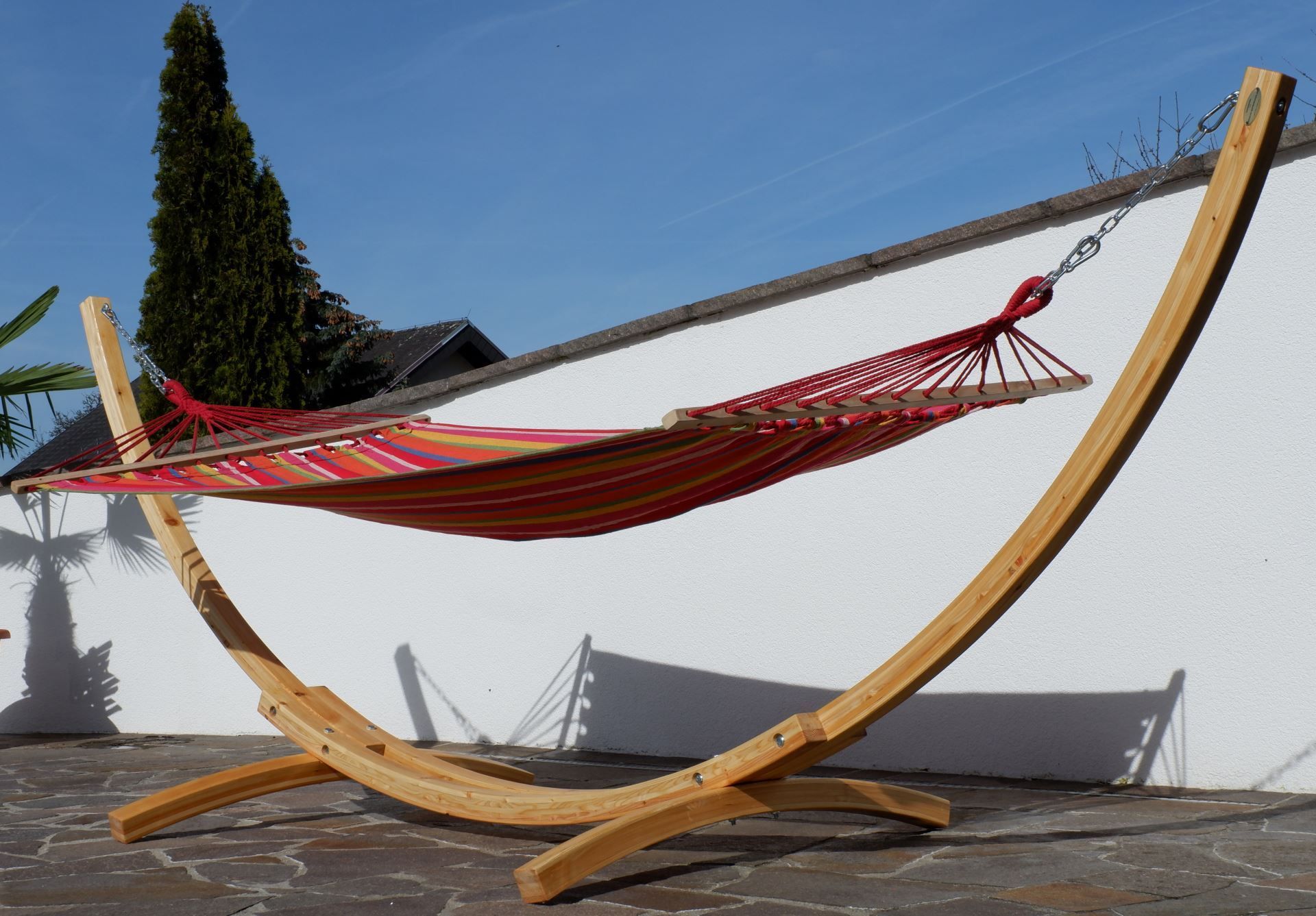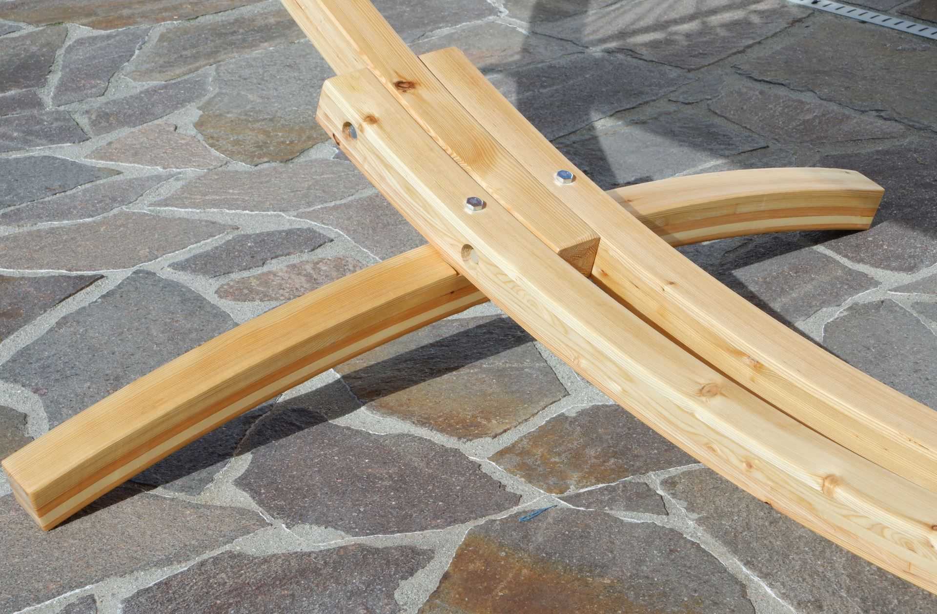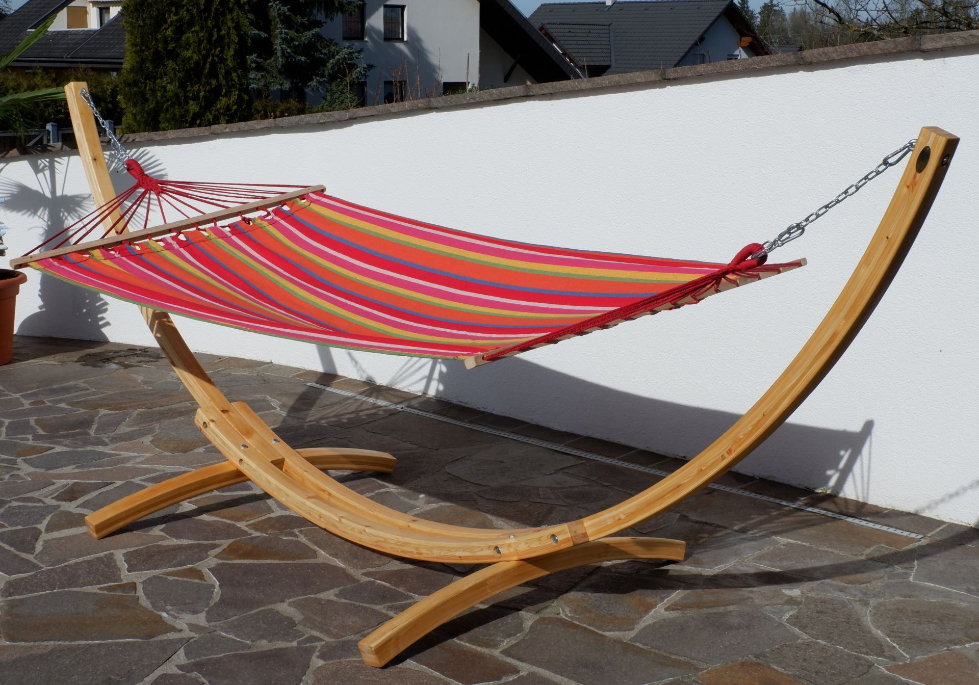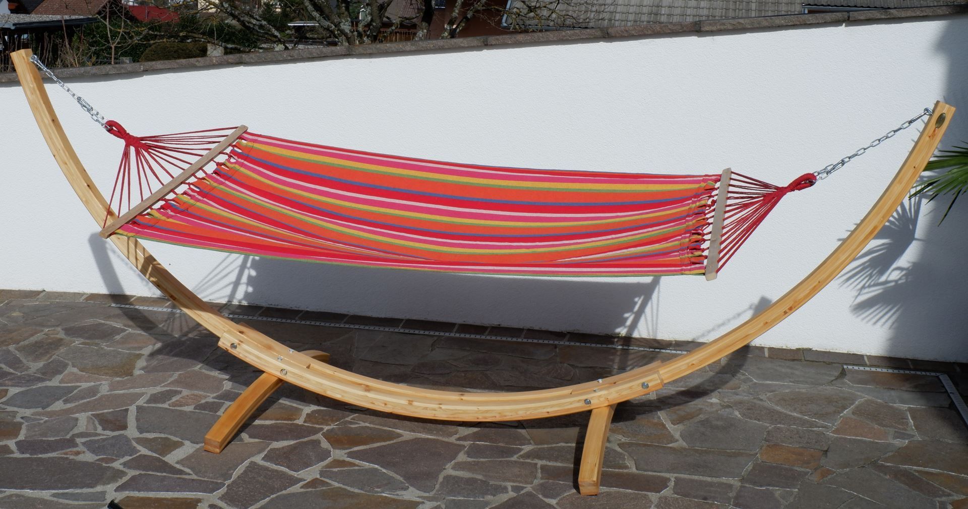350cm Hängemattengestell NATUR ALICIA Holz Lärche natur bunter Stab Hängematte