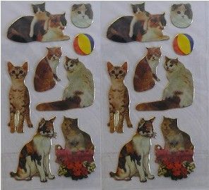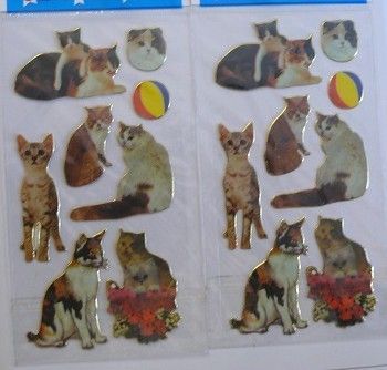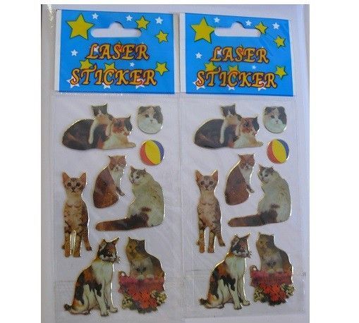 352 Stück selbstklebend Laser Sticke Glanz mit Goldene Rand Katzen und Ball Motive