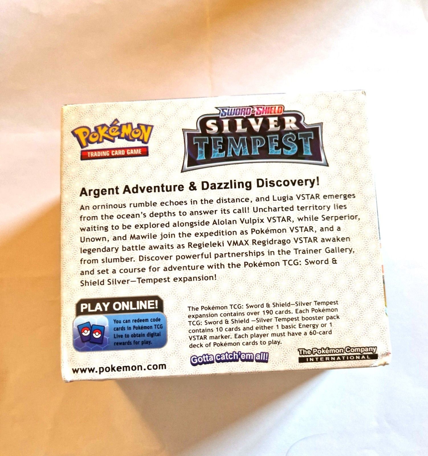 Sie kaufen hier 36 ungeöffnete Booster a 10 Karten Pokemoon Karten (englische Versionen) 36 Booster Box - Silver Tempest - wie abgebildet (englisch) Ohne Plastikverpackung!!! Proxy Karten!!! Sie bieten hier auf die abgebildete Box mit leichten Gebrauchsspuren siehe Bilder Diese Spielkarten haben ein... Mehr