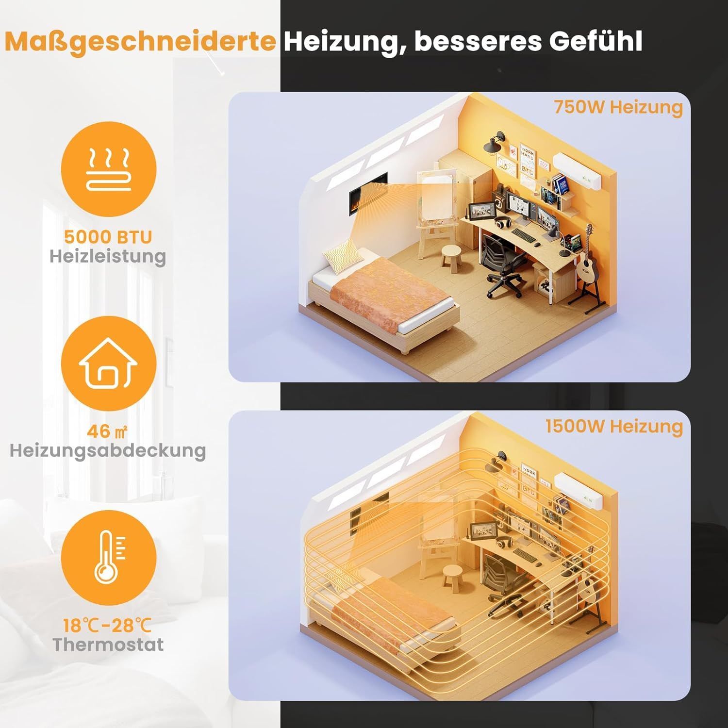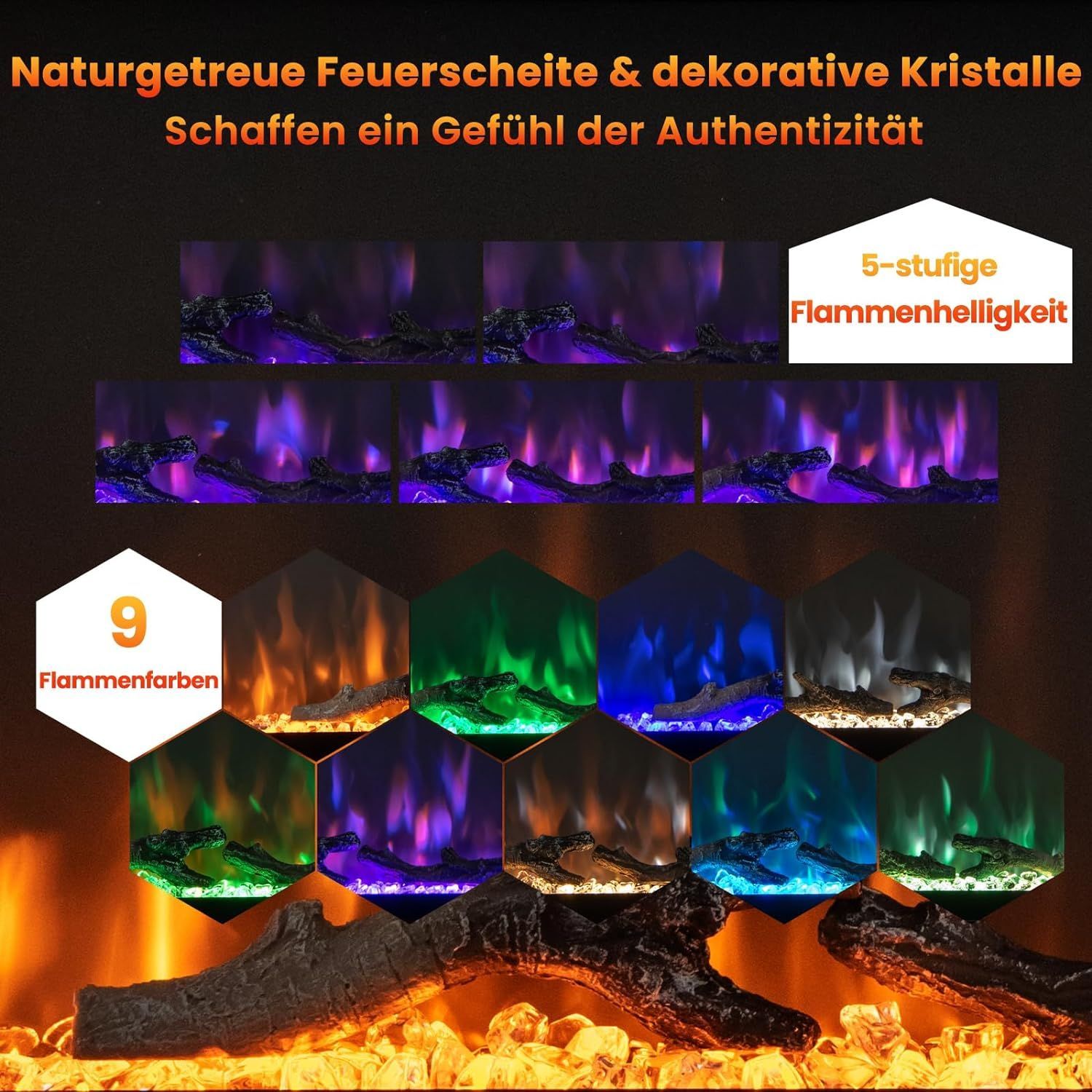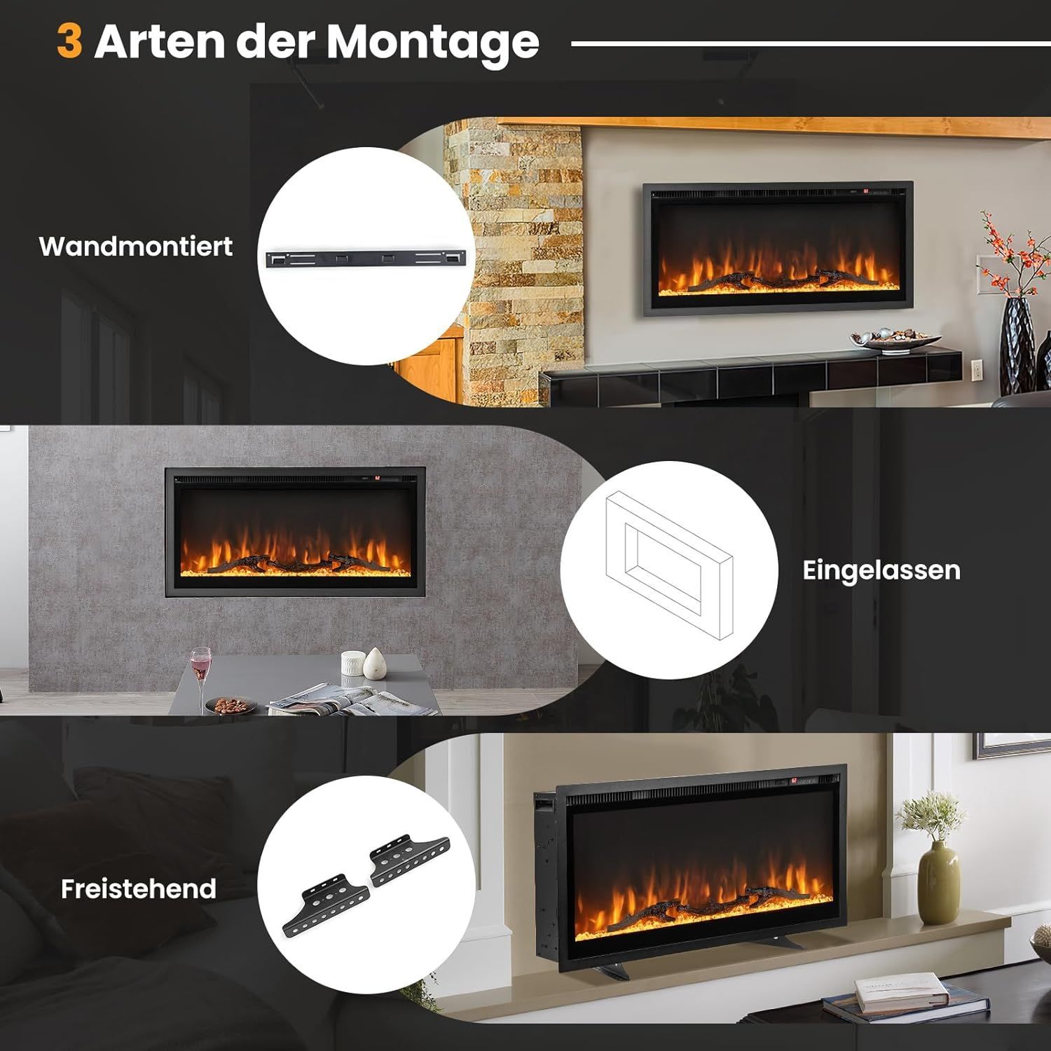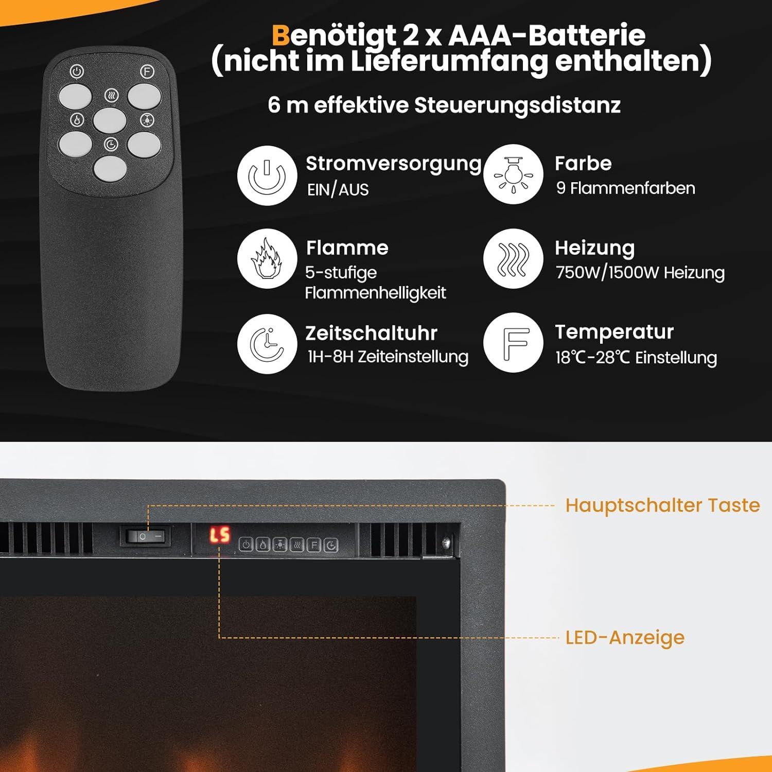 36" Elektrokamin 750W/1500W, Kaminheizung mit Touchscreen & Fernbedienung & 8H Timer
