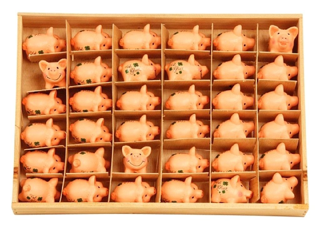 36 Stück Glücksschweinchen in Holzkiste Glücksbringer